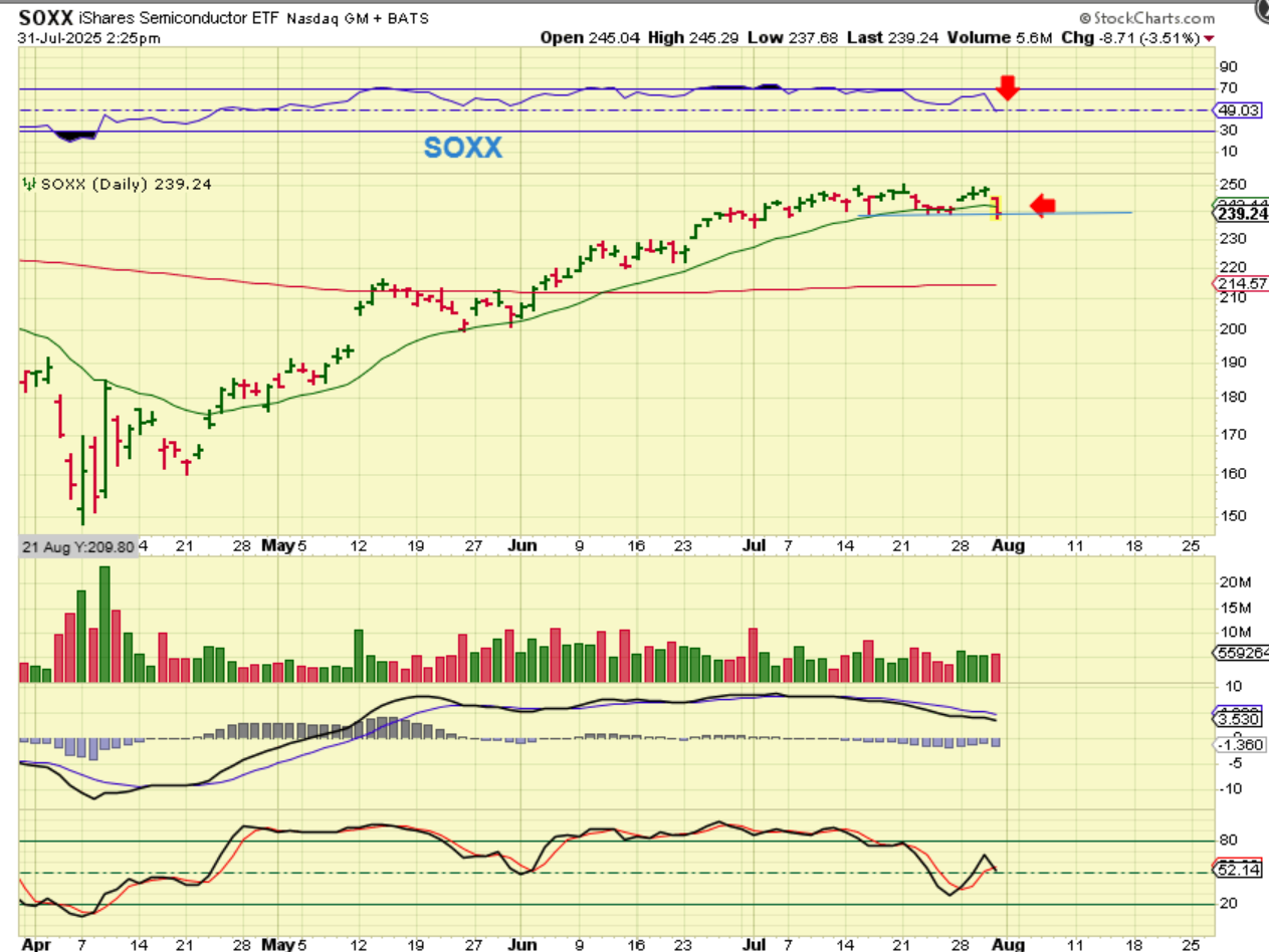 THE SOXX DID take out the prior low yesterday, but to be honest, that doesn’t really look like a dcl dip on the SOXX in mid July, does it? So this does make me wonder if we have the 2nd daily cycles low just ahead, but we’ll have to wait and see how things play out once we get a reversal higher.