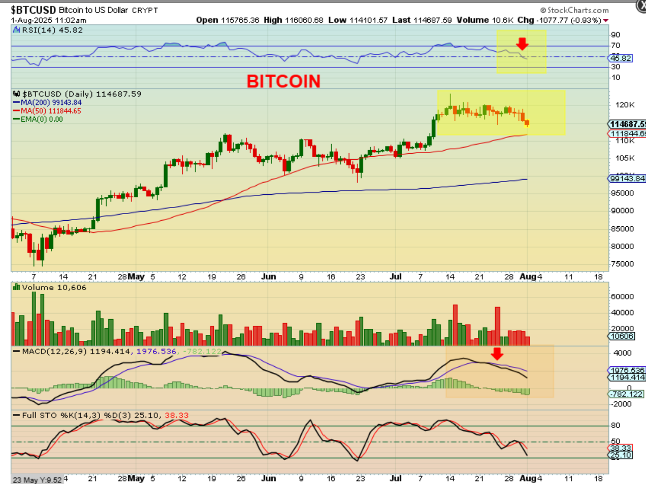 Notice that Bitcoin is showing weakness in the RSI as well as the MACD now.