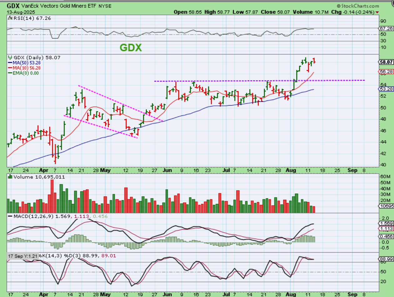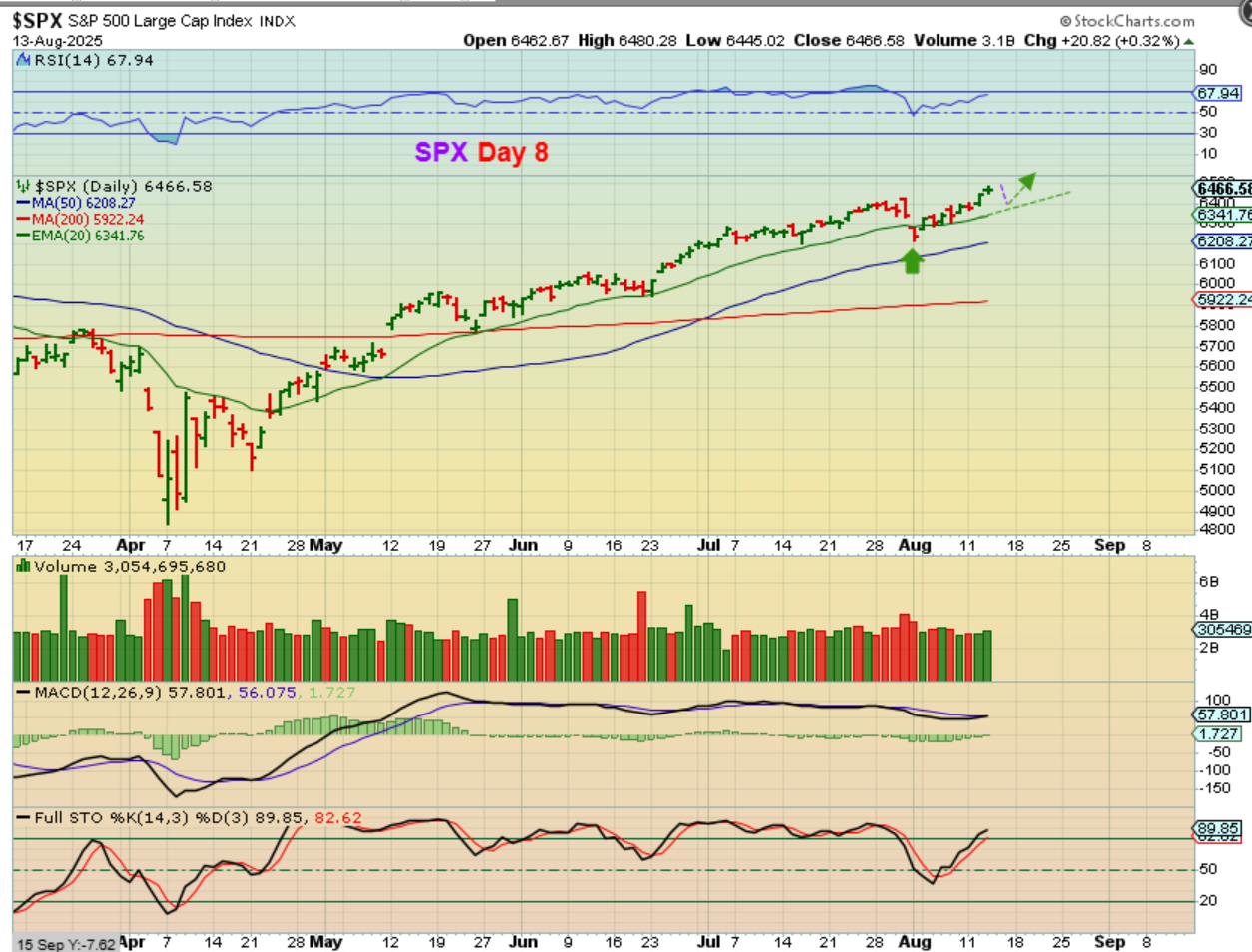 THE SPX gave us a doji and we do have a little divergence, so I have to wonder if our data gives us a knee jerk reaction dip, and then we bounce at the 20ema. This dip does NOT have to happen yet. We could rally sharply today *& tomorrow and then pull back next week too, but I just thought that I’d mention it with that doji, so we aren’t caught off guard if the Data dips us lower.