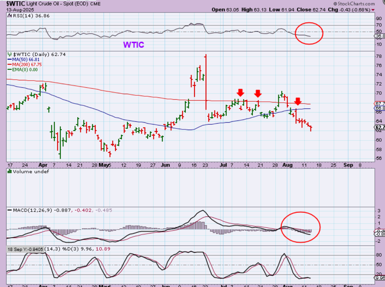 WTIC – Oil continues to drop and as it does, the RSI shows real weakness (RSI 36) and it seems like it is struggling to bounce. The rally was caused by the War in Iran, and that is hardly in the news anymore, so Oil may remain weak going forward if things don’t change geopolitically. Oil may bounce to the 50sma & 200sma and then chop around.