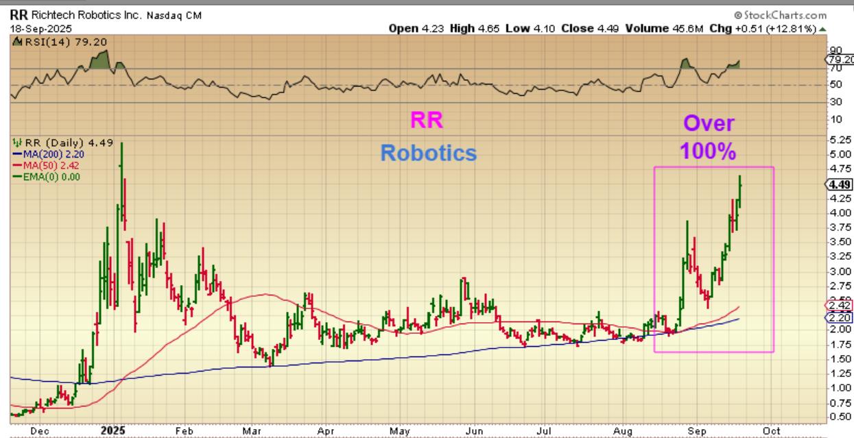 RR is still running, it was a buy as it crawled along that 50sma in a large consolidation. It rallied and dropped, so that made it very hard to hold, but then it took off again. This is a robotics company, so take a look at another robotics stock.