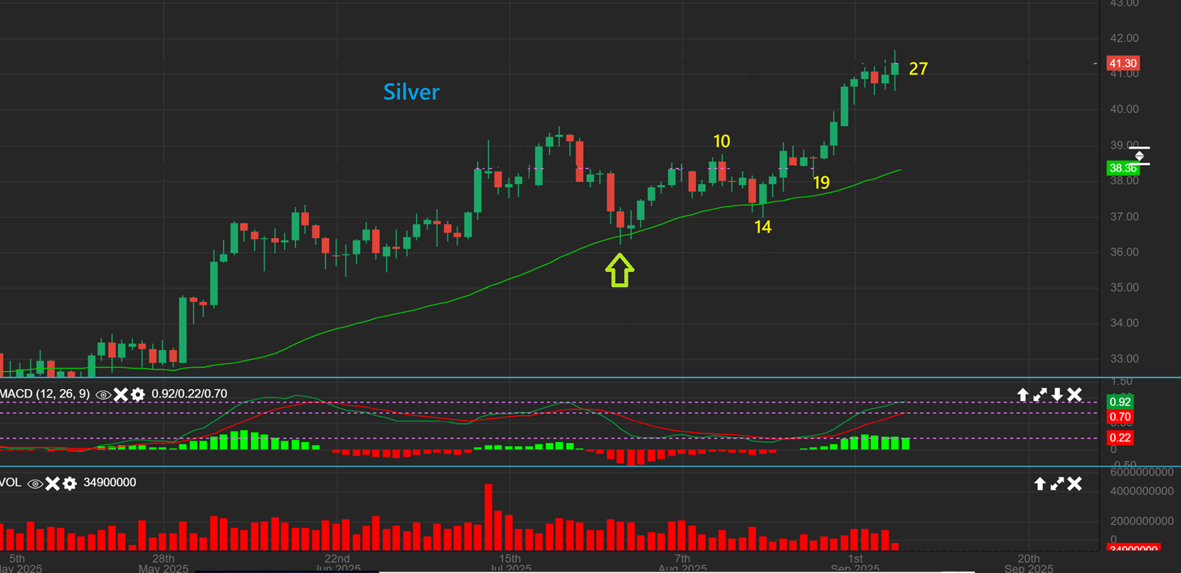 Junior Silver Miners are starting to run at an incline too 🙂 They are bullish, and volume is increasing nicely.