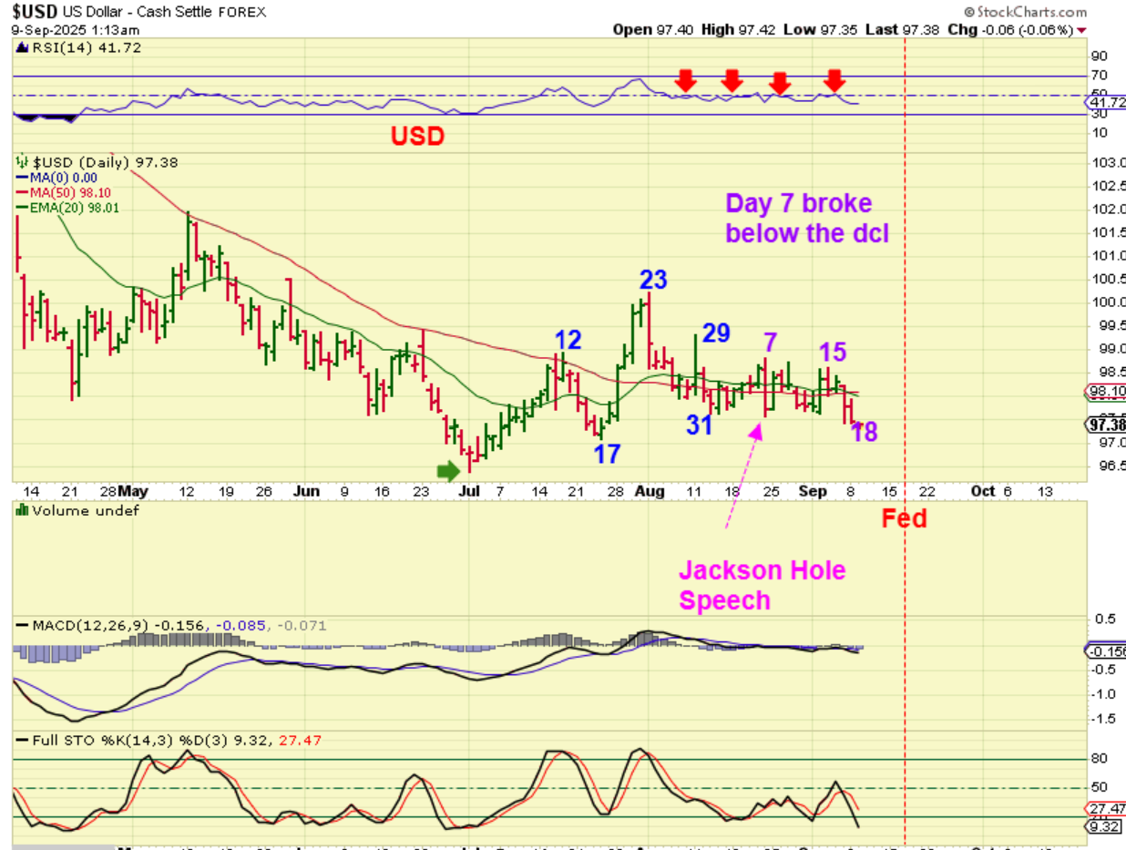 SILVER has been very strong at the 4th daily cycle. Should we count that green triangle as an ICL? That is not normal at all, but Silver is running and if Silver decides to just take off (we do have a rate cut likley), then you want to own some Silver or Silver stocks ( SILJ is an option)