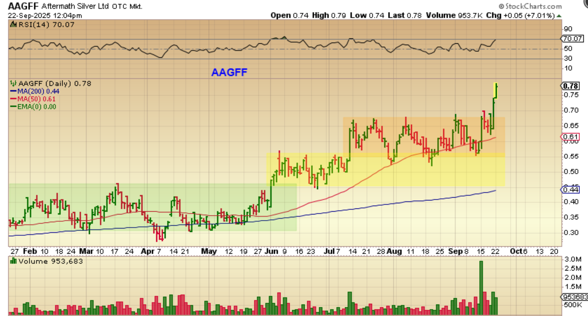 AAGFF was breaking higher with high volume, so it was a buy…