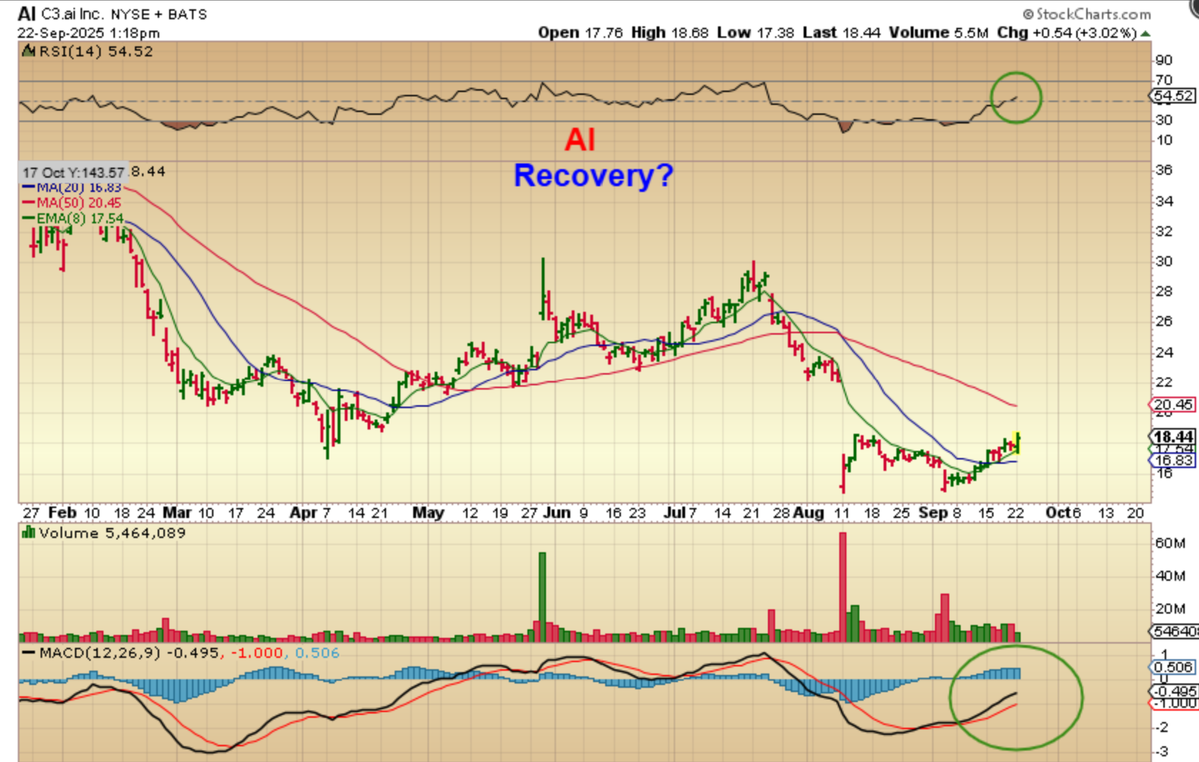What else might recover? ‘AI’ is a bullish area and ‘AI’ the company got clobbered recently, but it may be starting to recover.