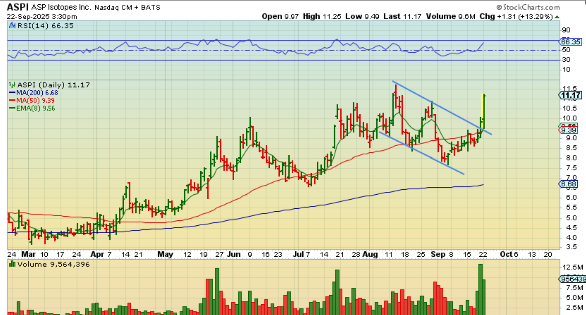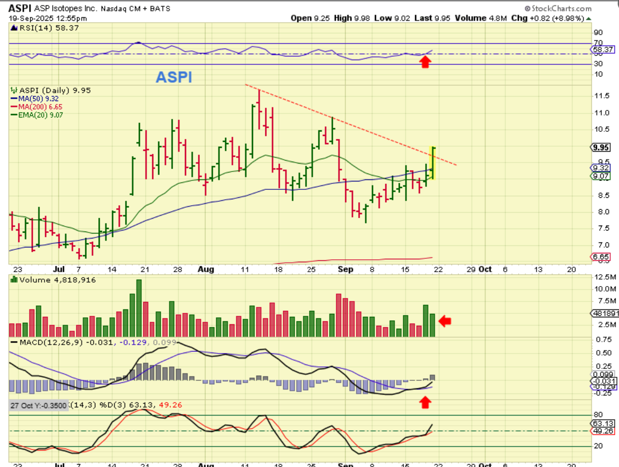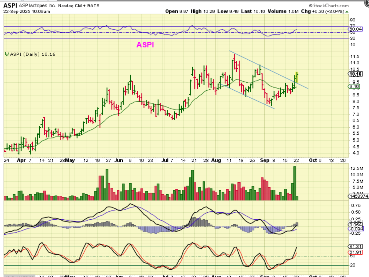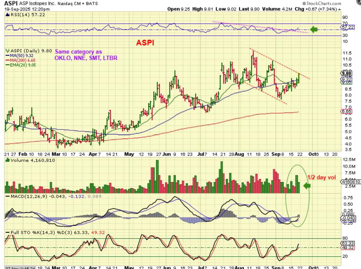 ASPI: I pointed this out last week as a lagger that looked ready to play catch up. It was the same sector as OKLO, LTBR, SMR, NNE, etc and they were running strong.