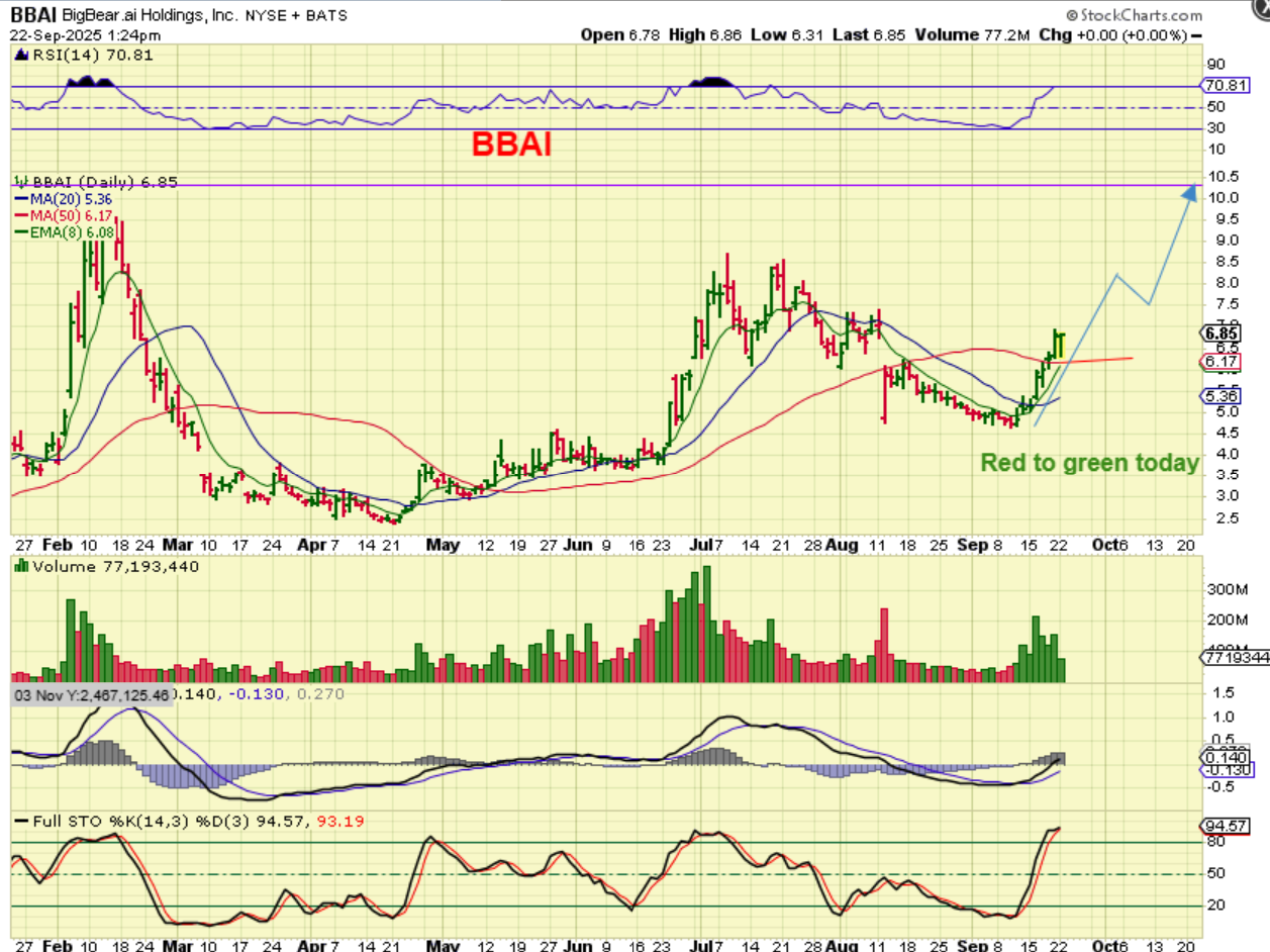 BBAI – I pointed out that it went green midday and then it closed up over 3%, so the markets remain bullish.