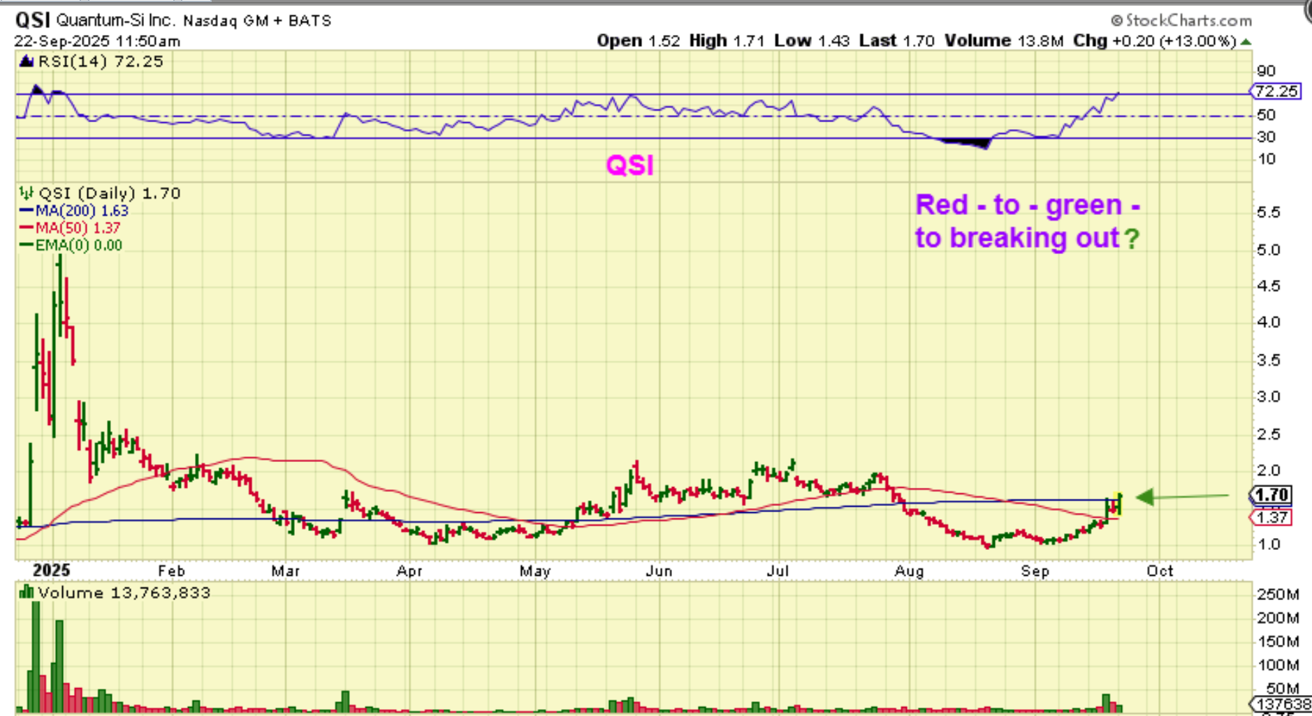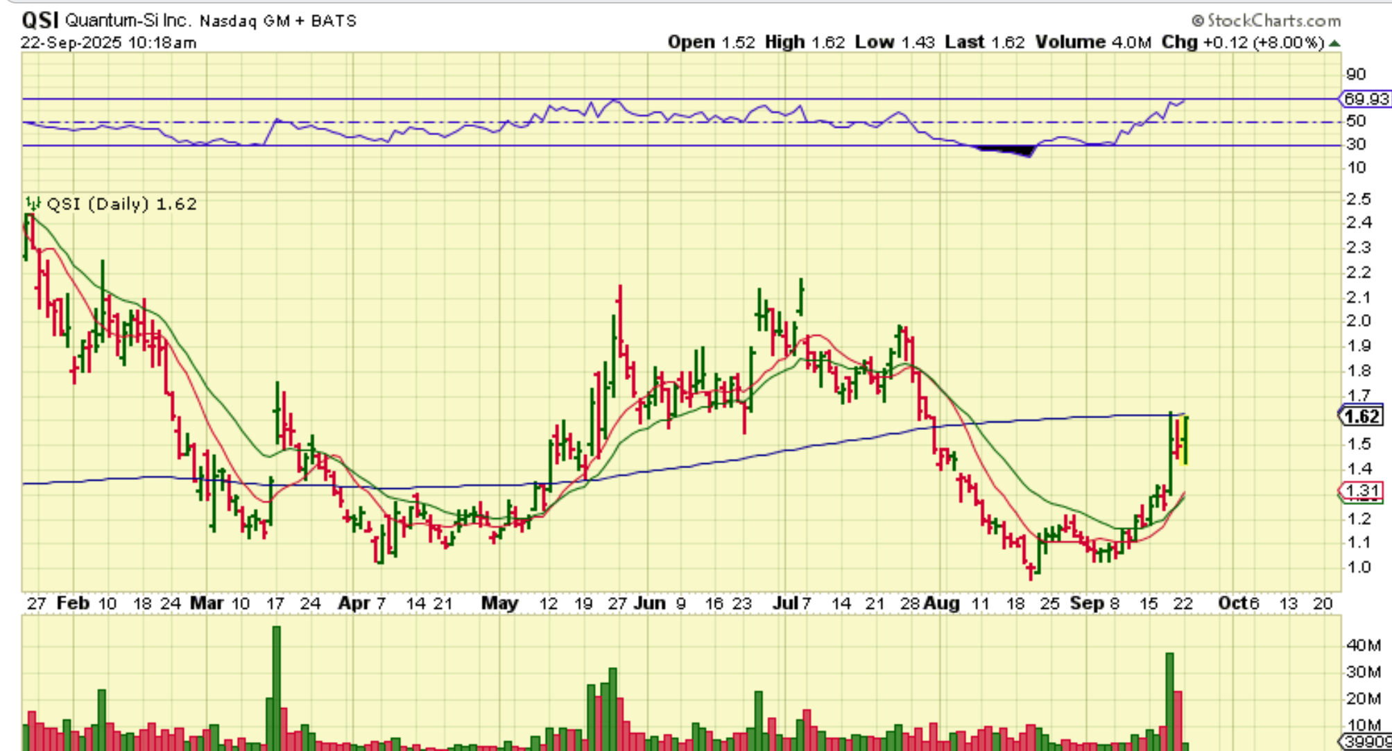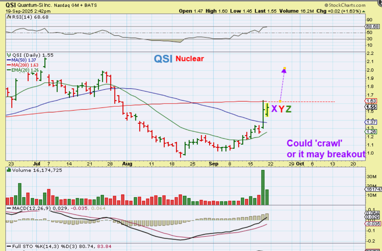 QSI – We bought this as it broke that 50sma. It was lagging other Quant stocks and IONQ , RGTI, QBTS, etc were flying!