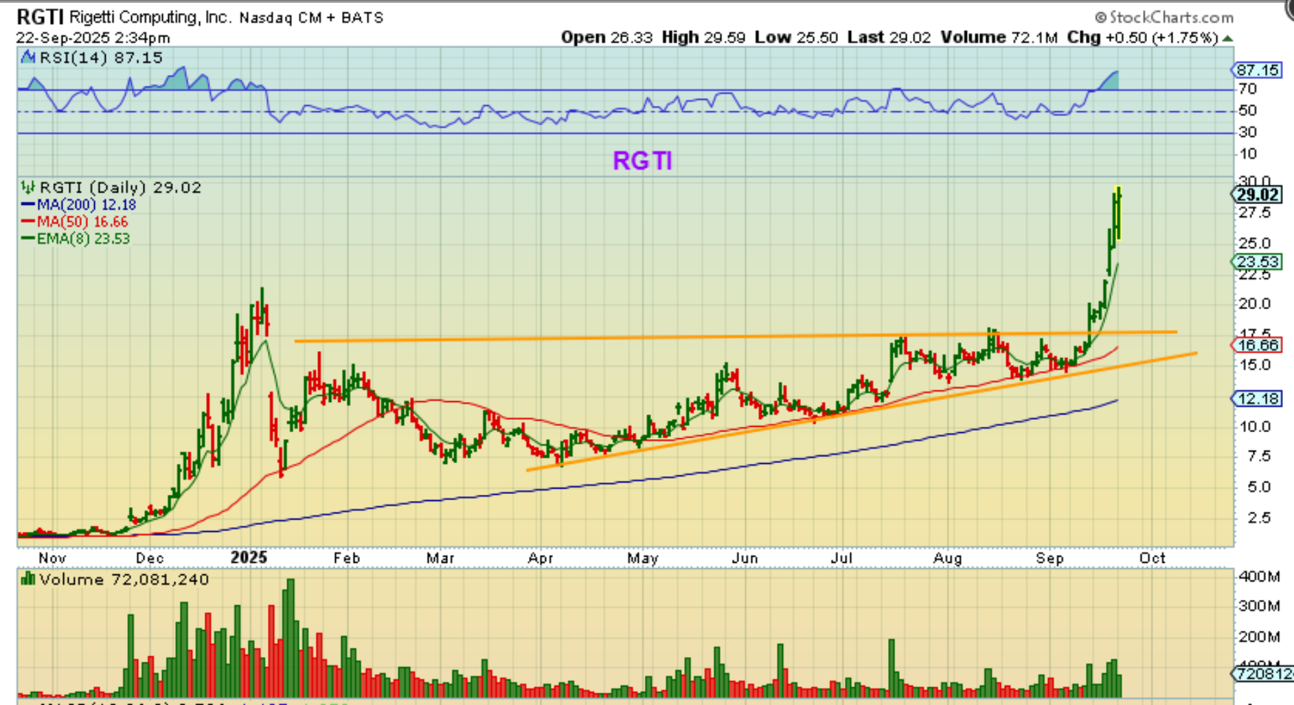RGTI continues to run from our buy point. This was RGTI, IONQ, QBTS, QUBT, ARQQ, QMCO, QSI ( QMCO & QSI were laggers that we caught more recently and are now running), etc.