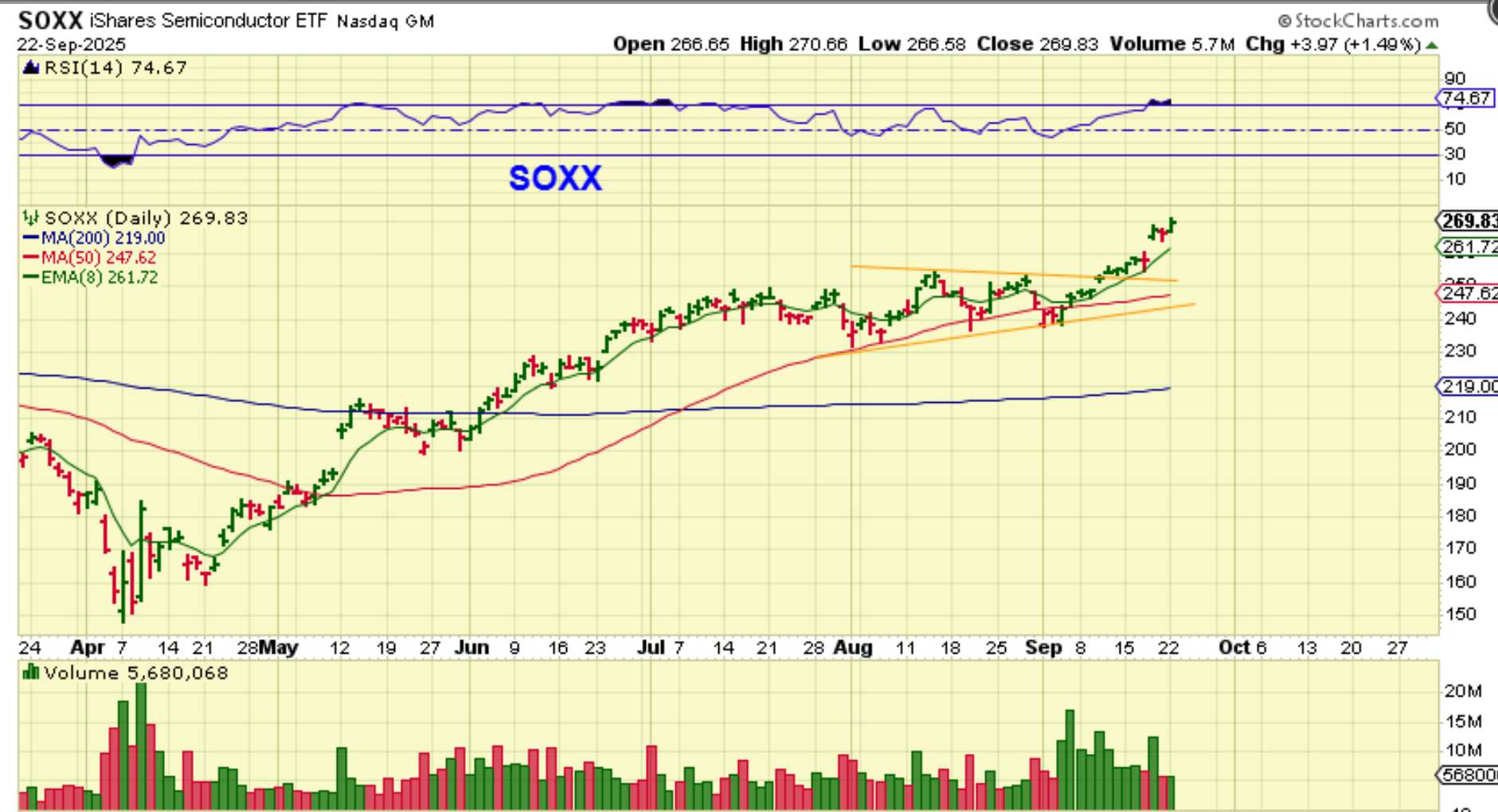 SOXX – Semiconductors continue higher too.
