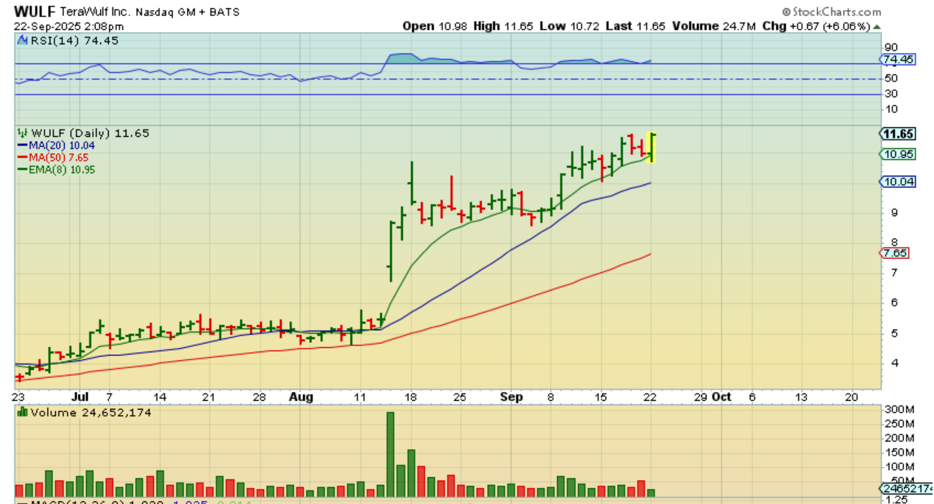 WULF continued higher despite Bitcoin being down. It went from red to green and continued higher. This has been buyable along the 10sma (8 ema is shown).