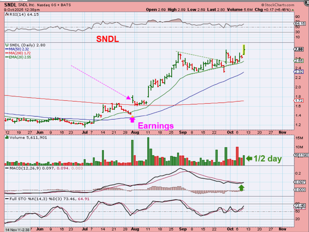 SNDL (& CGC) were MJs Stock that I pointed out this week with bullish set ups. TLRY released earnings and popped 20%, so CGC and SNDL both moved higher too.