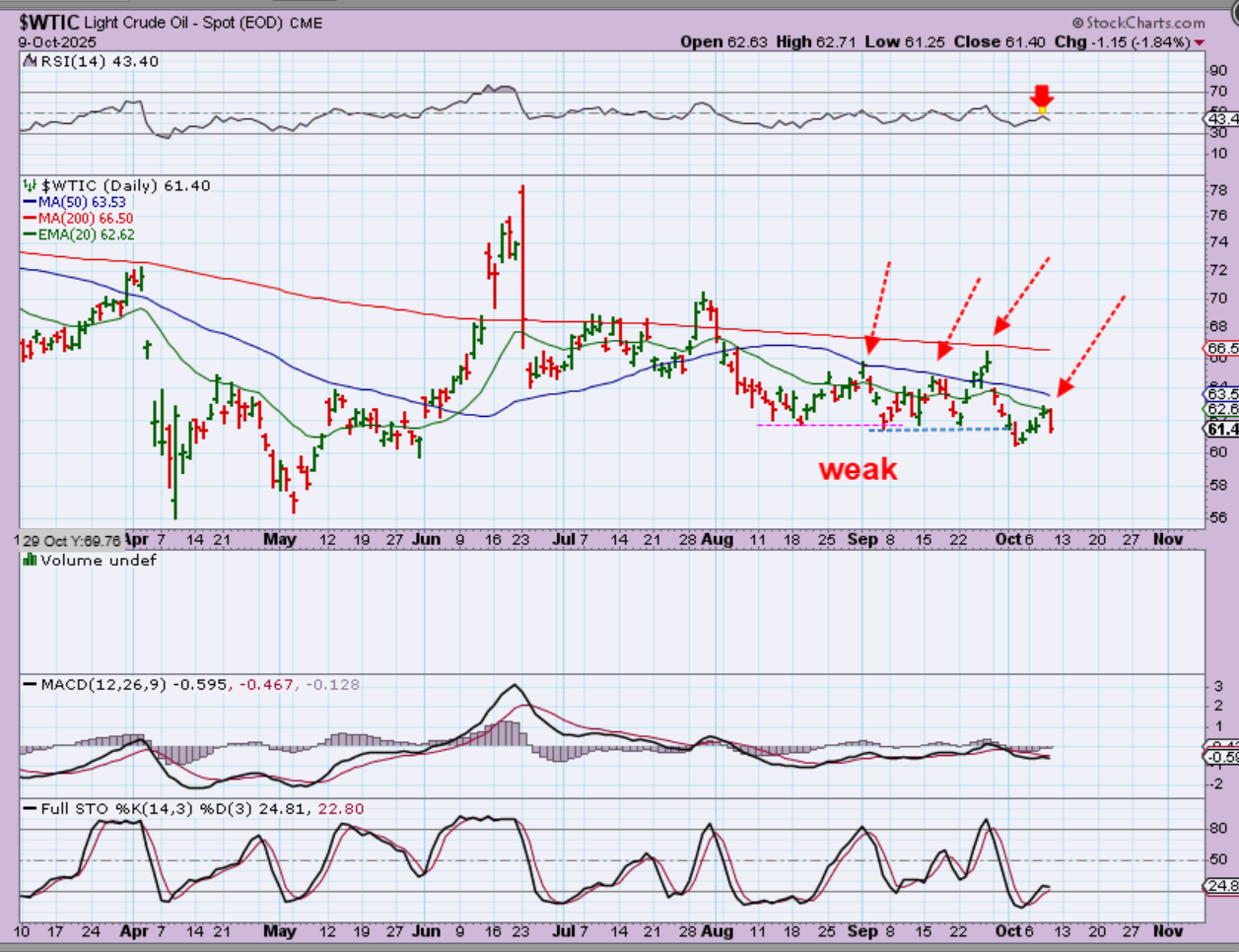 WTIC – Oil dropped 2% yesterday and is still at the lows. Oil remains weak.