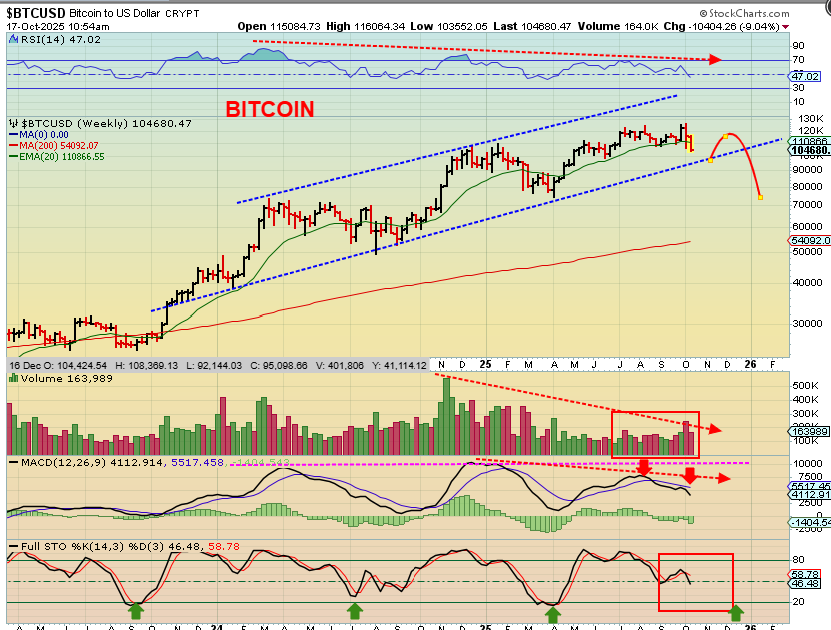 2. Do you recall when I showed weekly divergence in the MACD & RSI at the last high? That never strengthened in the MACD and RSI.