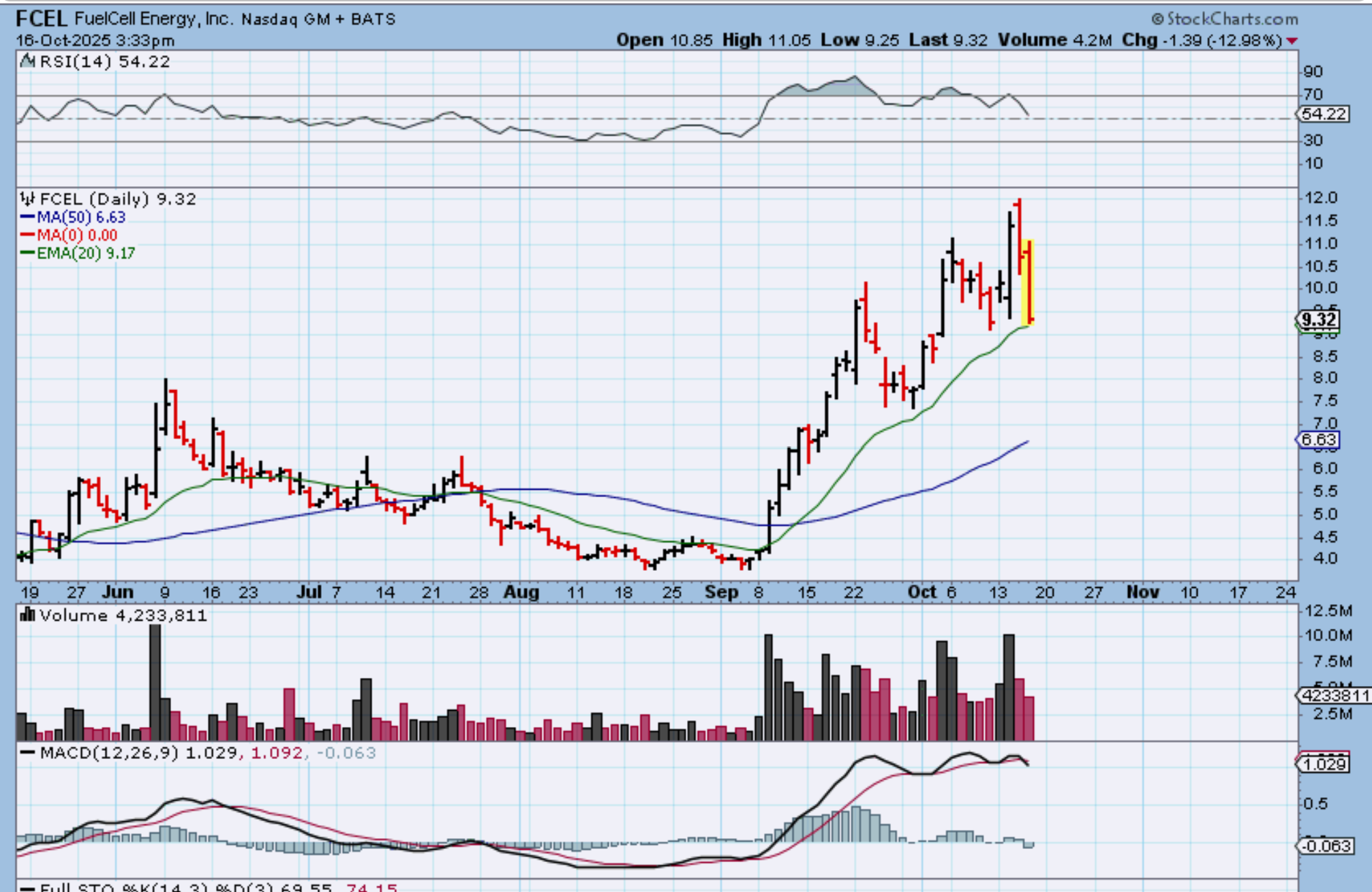 FCEL dropped 13% Thursday, and this chart doesn’t look bad if it reverses and the 20 ema, but with the recent chop and weakness, I wonder if it will? So I will be watching closely, especially because…