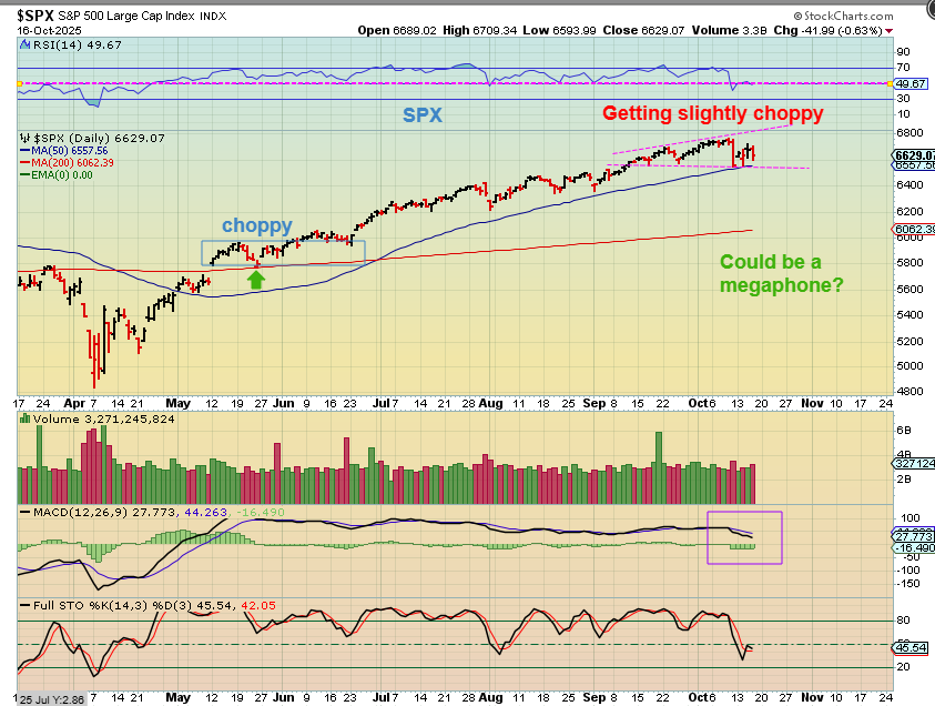 THE SPX dropped and the stock market has become a bit choppy again. If you look over at May and June, you can see that this kind of price action is normal, and it is not really bearish unless the lows are broken. I’ll be watching those lows.