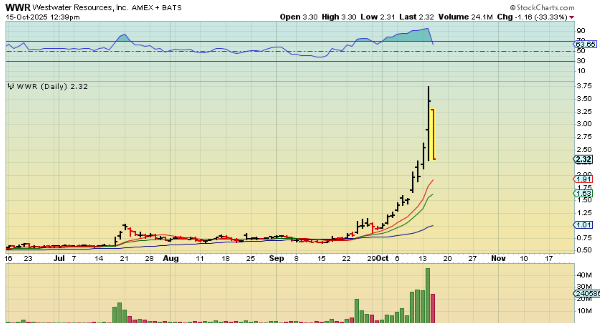 WWR – dropped Down 33%. Ok, so we have moving average support at $2, right? Maybe, we’ll see, because…