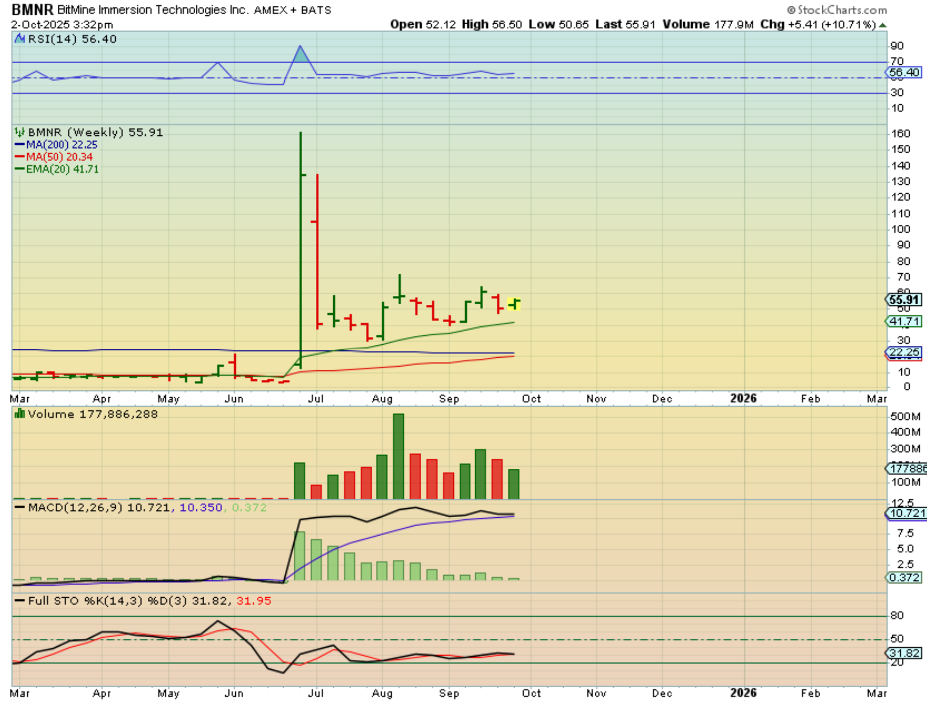BMNR is a crypto stock that I don’t mention often, because it can be risky, but it literally ran from about $4 to $161 In 4 days! Now it has had time to come back to Earth, consolidate, and start to bounce higher, so this is the weekly chart. It is a bullish set up and even the volumes are bullish, so a small position could make big gains. I do own it.