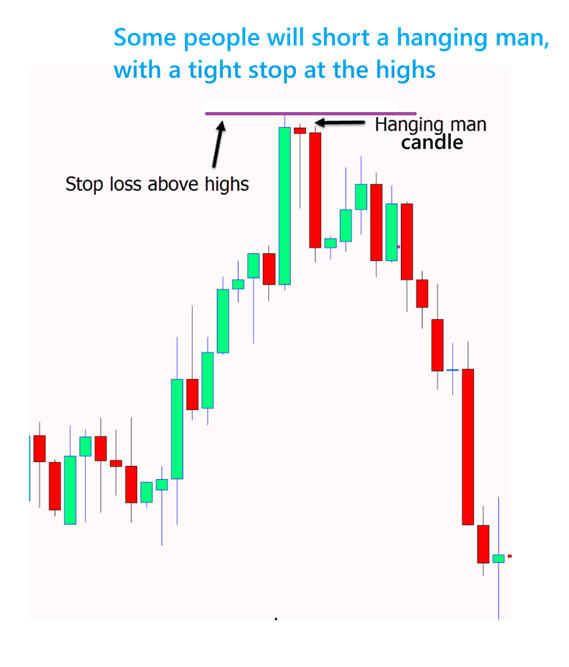 THAT LONG SKINNY CANDLE IS CALLED A ‘HANGING MAN CANDLE‘ with follow through, and traders will actually go short here with a very tight stop.  See my drawing. Price typically will not run higher from here until it re-sets sentiment with a dip.