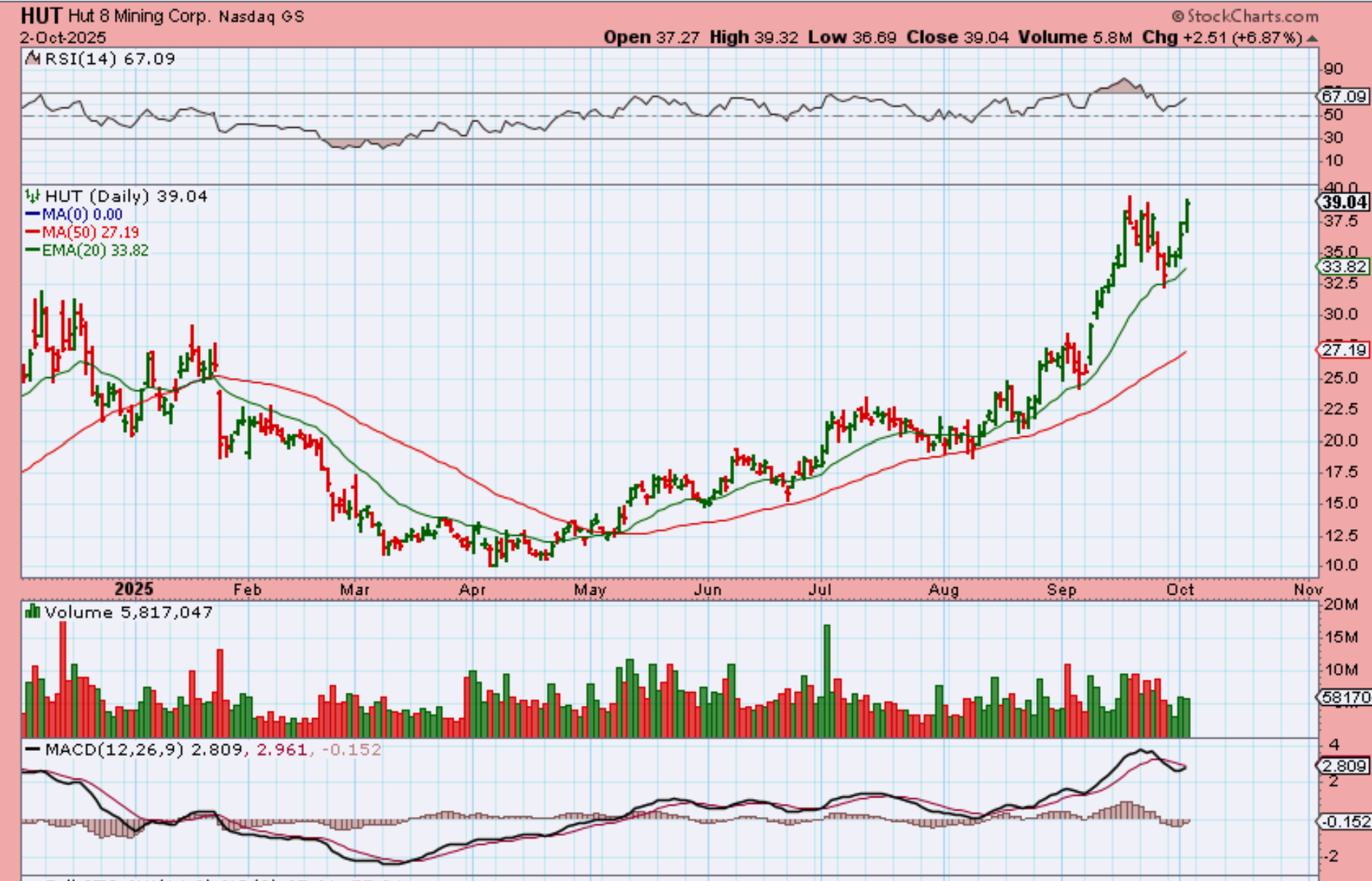 HIVE reversed at the 20 ema and has been running rather well this week.