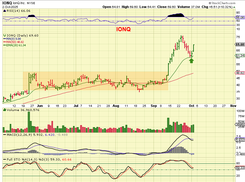 IONQ reversed at support and is finding follow through. These pulled back quite a bit, but they do make up for lost time very quickly.