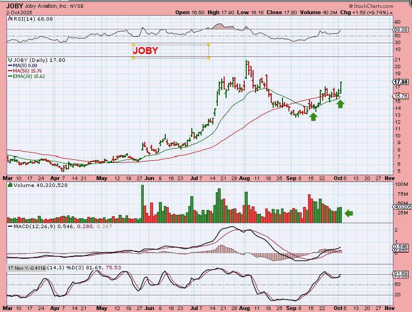 JOBY is also a buy again, and it surged 10% yesterday, so the Aviation sector still looks good.