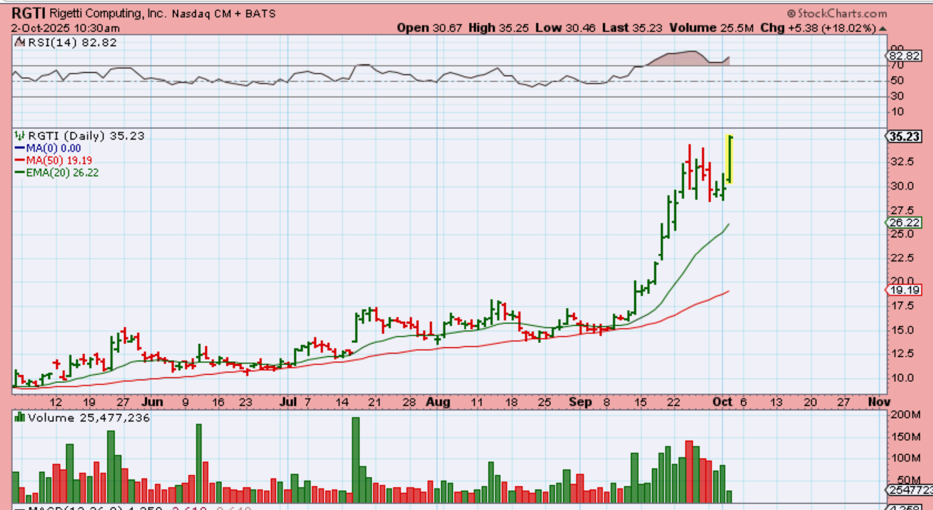 RGTI was also breaking out by 10:30 in the morning, so I posted this in our commenting area to, after the first hr of trading. These can run quite strong. The last time it broke out at the 50sma it was in the $16 area and ran to $34. Wow!