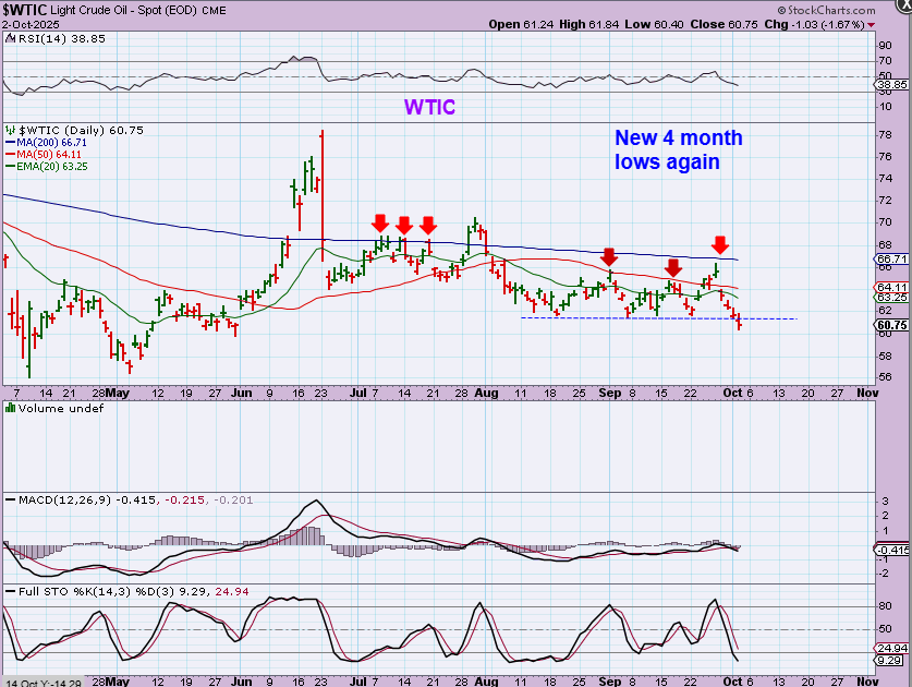 WTIC – Can you believe this? I just went through Oil Stocks and showed their bullishness (WTI, APA, PUMP, VET, XOP), and here Oil breaks down completely and takes out the lows.  This is not bullish, but Oil stocks were hardly phased, so it is a little hard to understand those Bullish set ups in Oil stocks.  I am not in Oil Stocks, mainly because we have had So Many other good trades that I entered. Let’s look at the XOP…