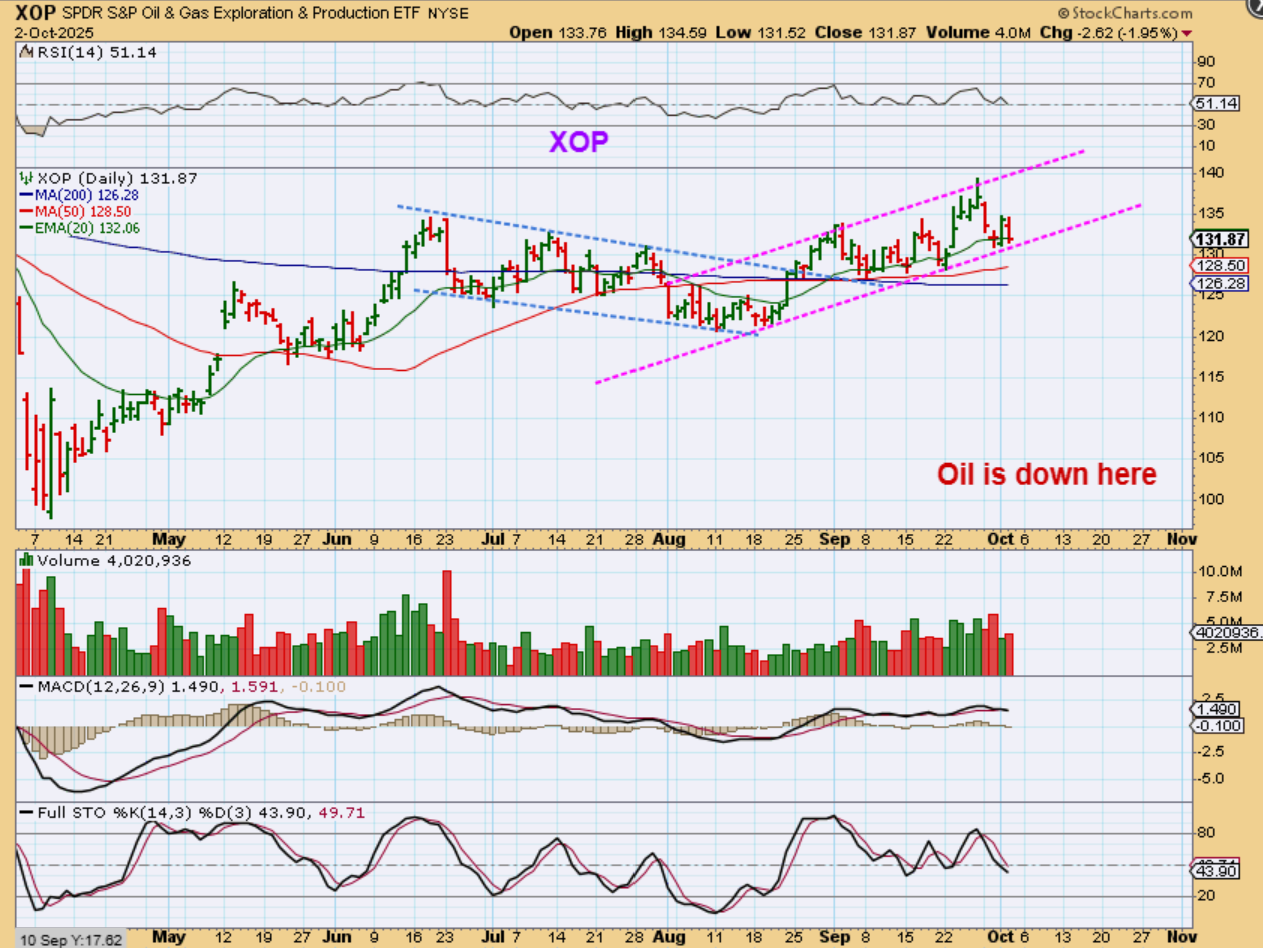 XOP – With Oil breaking down below the 4 month lows, Oil stocks look ok.  I guess at this point I would have to say , “Trade at your own risk’, and use stops.