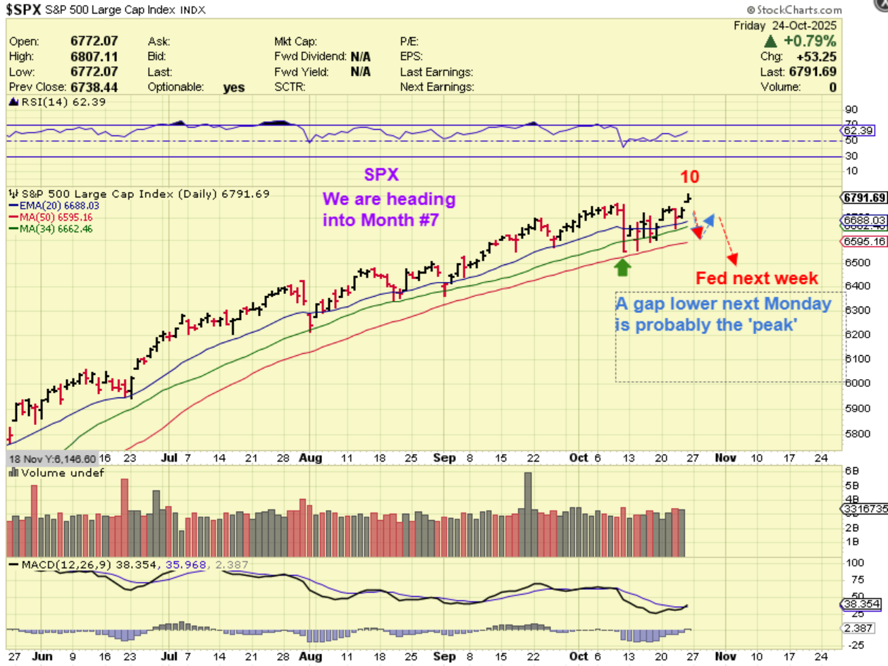 SPX WEEKLY – This has already been a steeper run than the last one in 2024. We are on the 4th daily cycle and they can have 5. The general markets are due for an ICL here on month 7, but Silver was due in October, and it has blasted higher. I can’t completely rule out a rate cut rally higher.