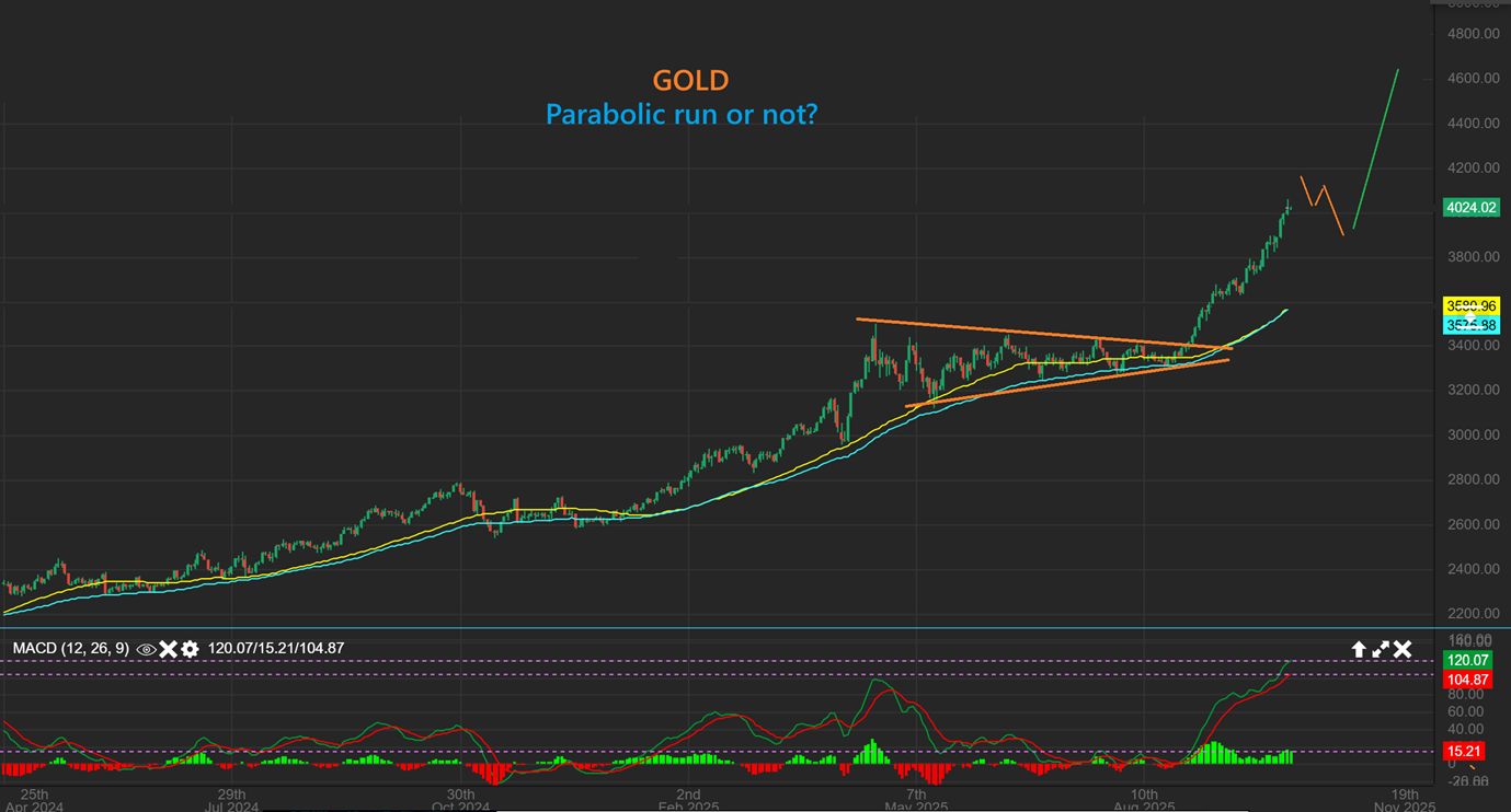 GOLD is running strong despite the USD run out of the lows. Is this running parabolic or not?  I would have to say…