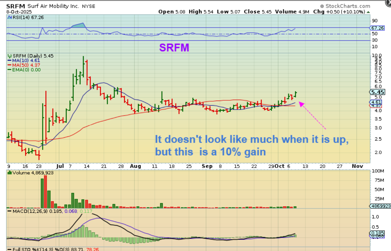 SRFM pushed higher. Read the chart. You can see that if this completes forming a cup, it will be good gains.