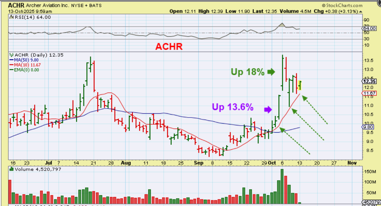 ACHR was looking good too, so I posted this 30 minutes after the markets opened. It closed up 6.6% and can run much higher if the markets stay bullish.