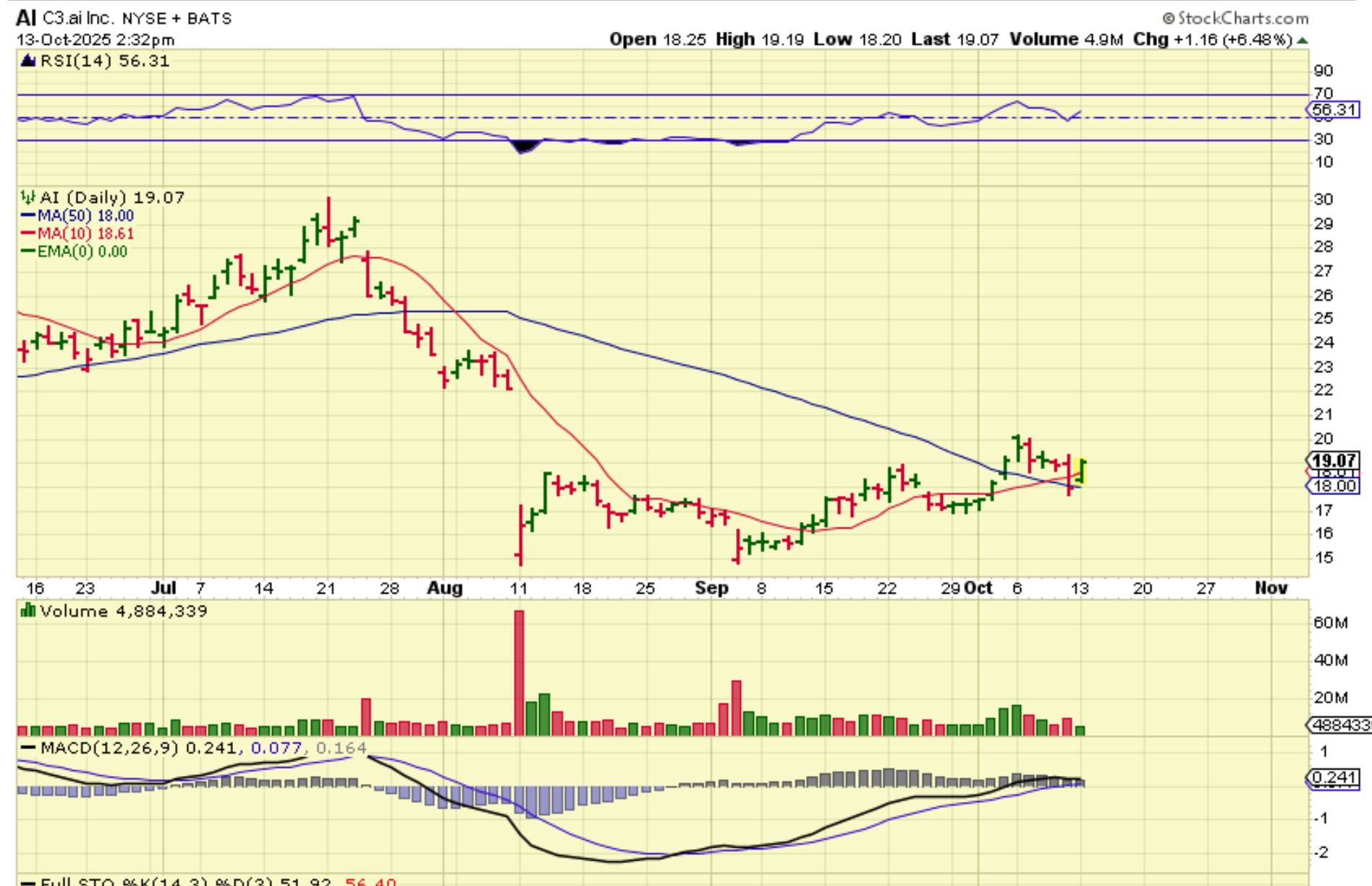 BBAI started to run and was up over 20%, so I looked at my AI watch list of SES, PONY, etc, and saw ‘AI’ as a lagger that could be bought reversing at support, and posted this in the comments.