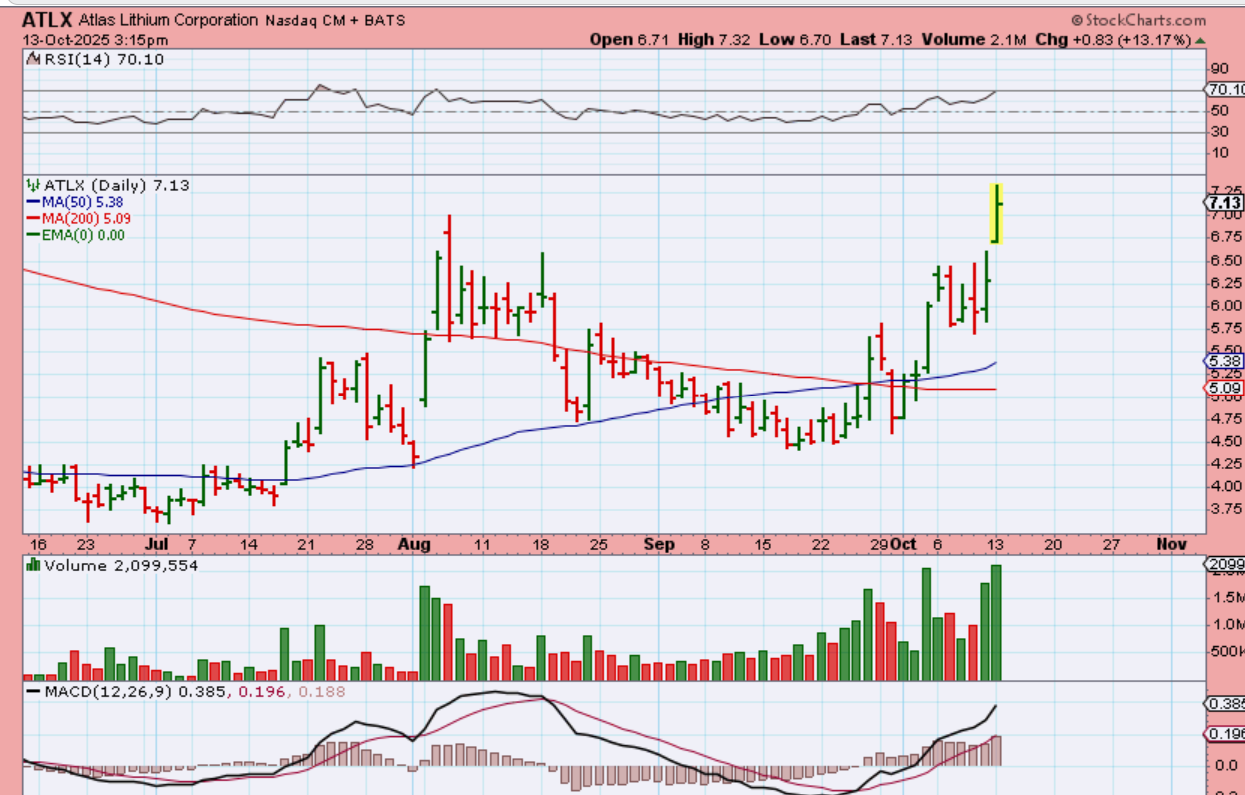 ATMX is a lithium stock that IGNORED the selling Friday and continued higher Monday, and LAC and SLI were up about 16%, so