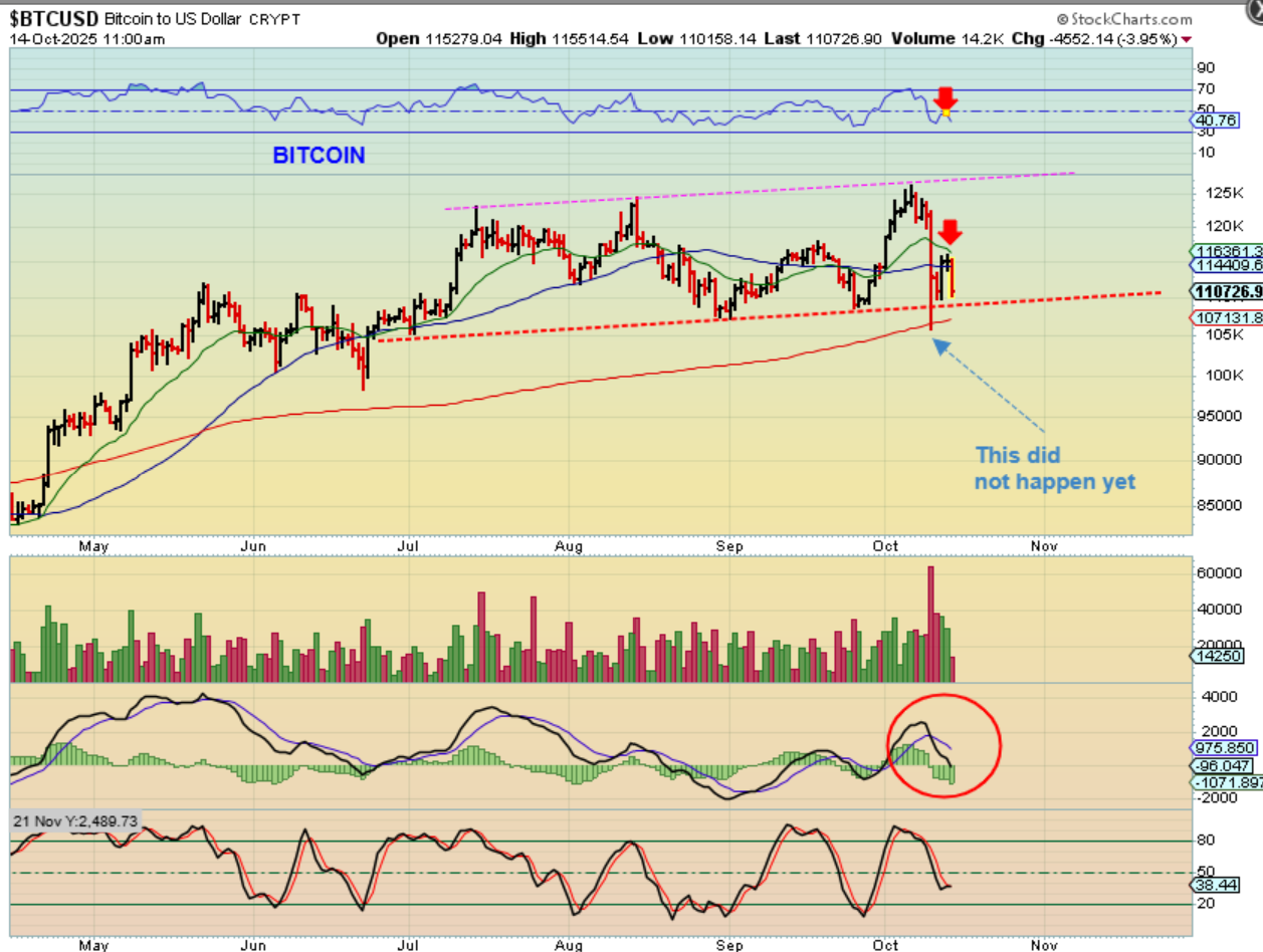 I want to start with this live chart of BITCOIN, mainly to show you that the lows WERE NOT broken yet. I want to use a stockcharts chart, but they , for some reason, show Bitcoin as breaking down below the lows over the weekend.  SO THIS IS BITCOIN NOW and it looks like day 45 (of a possible 60)…