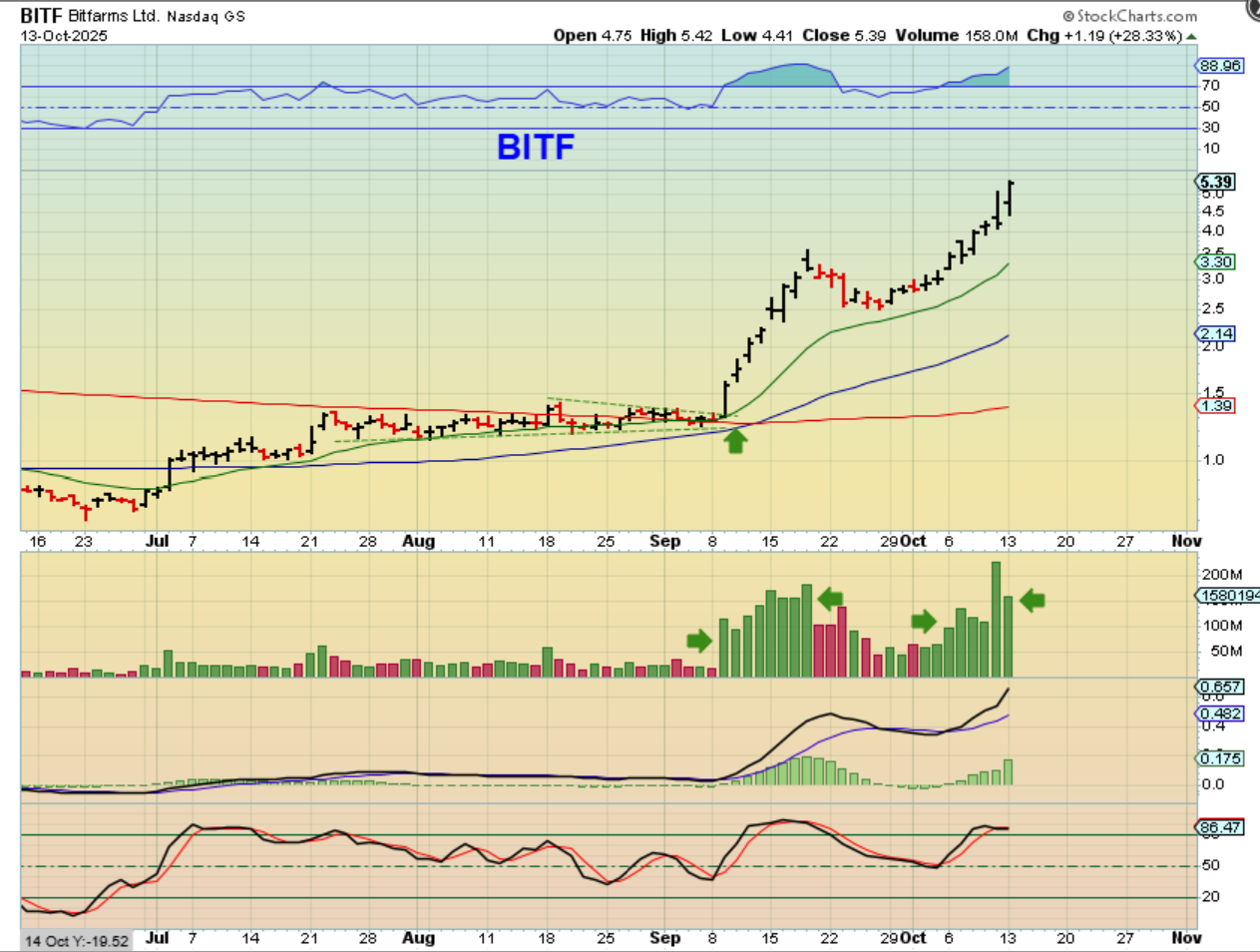BITF was one of our Buys near the 50 & 200sma  and it has just been ripping higher on its own path. Bitcoin is choppy and at recent lows, but BITF was up almost 30% on Monday and is at new highs, so my point?  Many of the crypto stocks are making their own paths higher.