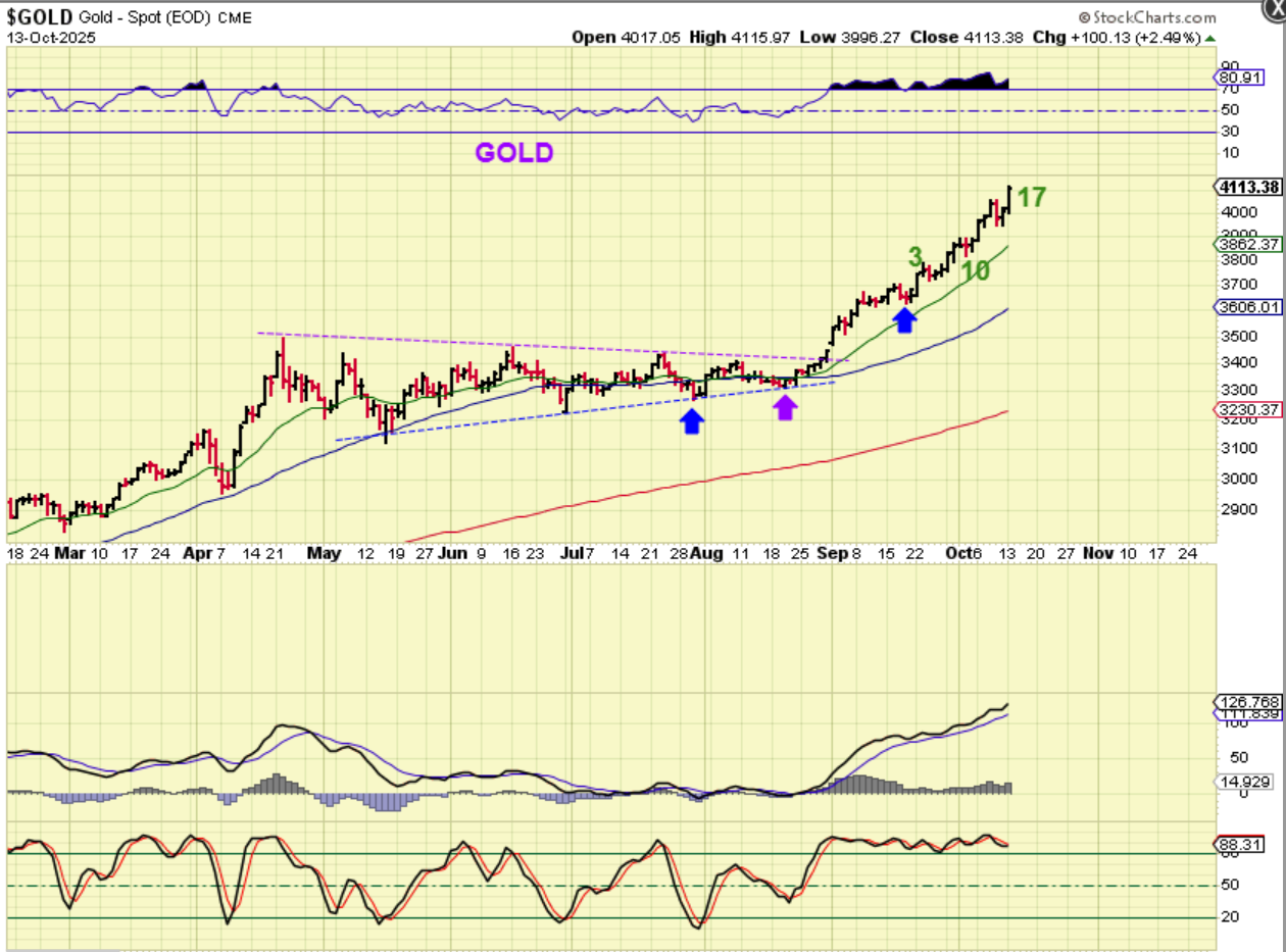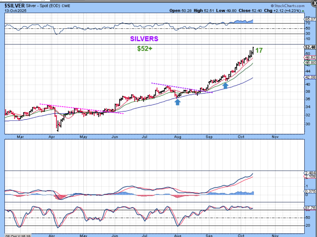 SILVER is also on day 17 and it has made new all-time highs. This can run higher too, but I’d like to see it start to roll over soon. I am getting a bit concerned if we don’t pull back sooner than later. Why? Because…