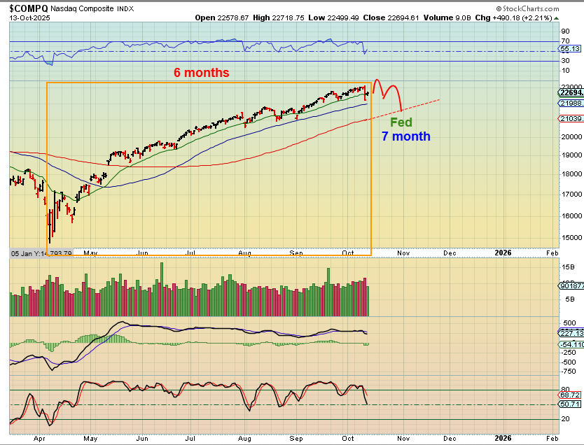 Right now, the very strong Bull run in the NASDAQ is at 6 months without that visible ICL drop, so I still just have to expect that we will see one, since even strong bull markets do.  I have been guessing that it could be around the time of the Fed mtg giving us a 7-month intermediate cycle, but we’ll continue to wait and see.
