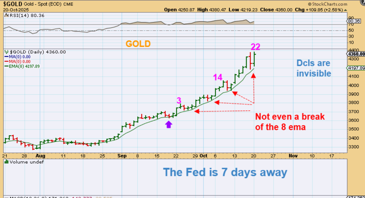 IF WE DO NOT DIP AFTER THE FED, we’d only be on day 12. I’m going to begin to wonder if the General Markets act like the Precious Metals and start to run parabolically. Bitcoin will also be topping, so everything would top at the end of 2025. If so, ride those stocks just like the Miners until it exhausts. I do think that this is ‘less likely’.
