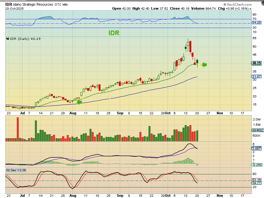 IDR has been running strong. It also pulled back sharply, and put in a reversal at the 20ema. You could buy with a stop under Mondays candle.