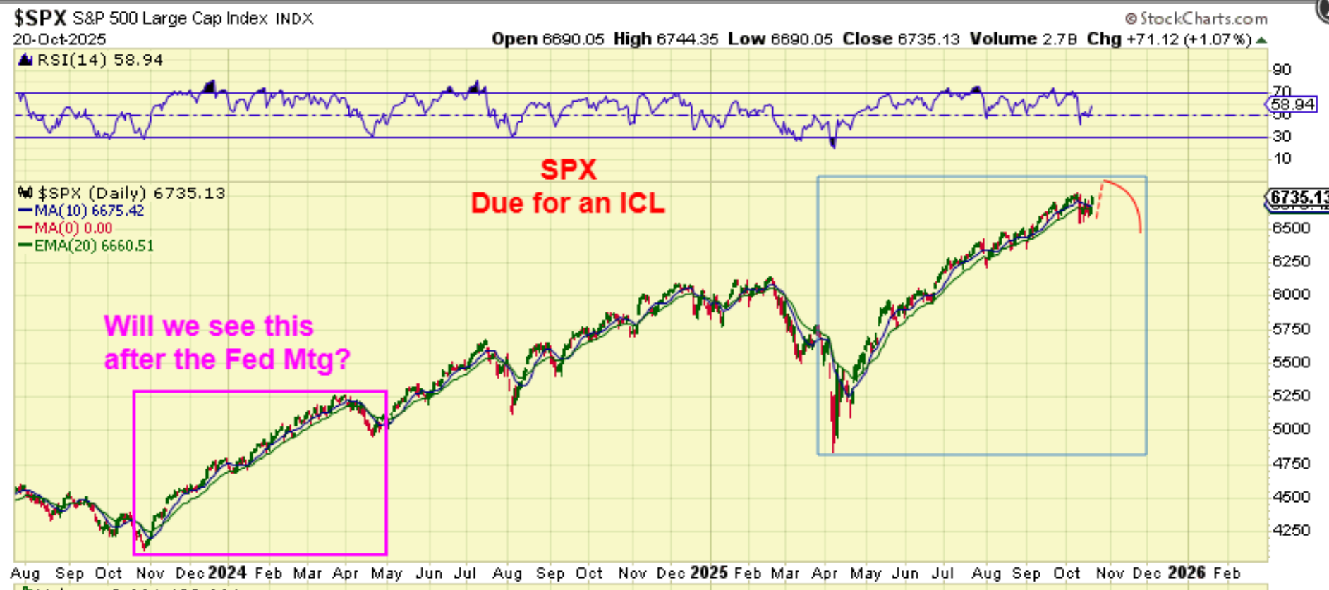 SPX – So I’ve been wondering if we’ll see something similar to the Magenta box. That was a strong rally out of a deep ICL too, but it only lasted 6 months. If we repeat here, it’ll be 7 months, and we are due for an ICL. IF WE DO NOT DIP AFTER THE FED? …