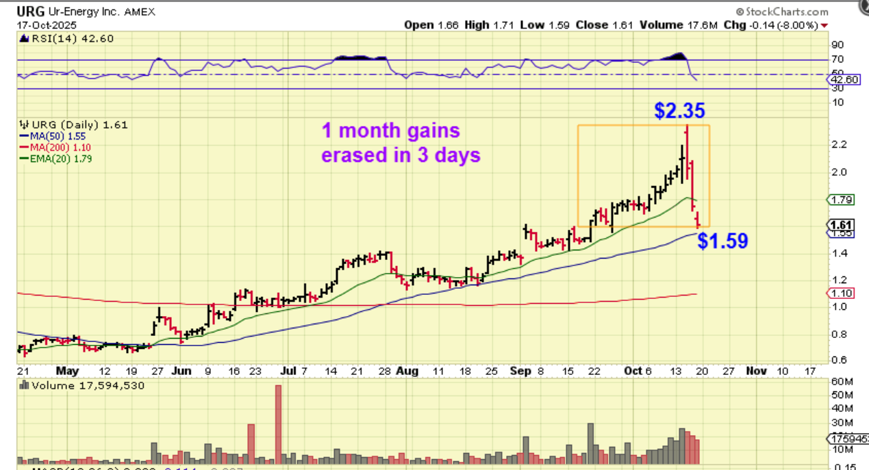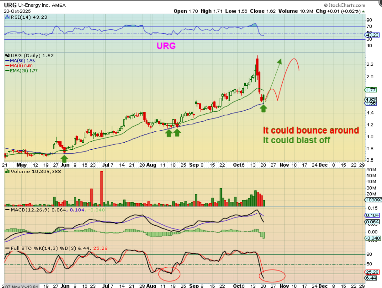 I wanted to mention that I noticed that Uranium Stocks, Rare Earth, Specialty Metals, etc pulled back quite sharply. I’d say that it was sharp enough that it was tough if you are riding them out. However, they also may have become a nice opportunity as they fell to support and held up. I’ll show you below what I mean…