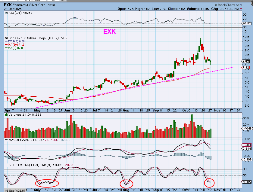 EXK is above the 50sma and the longer-term uptrend line…