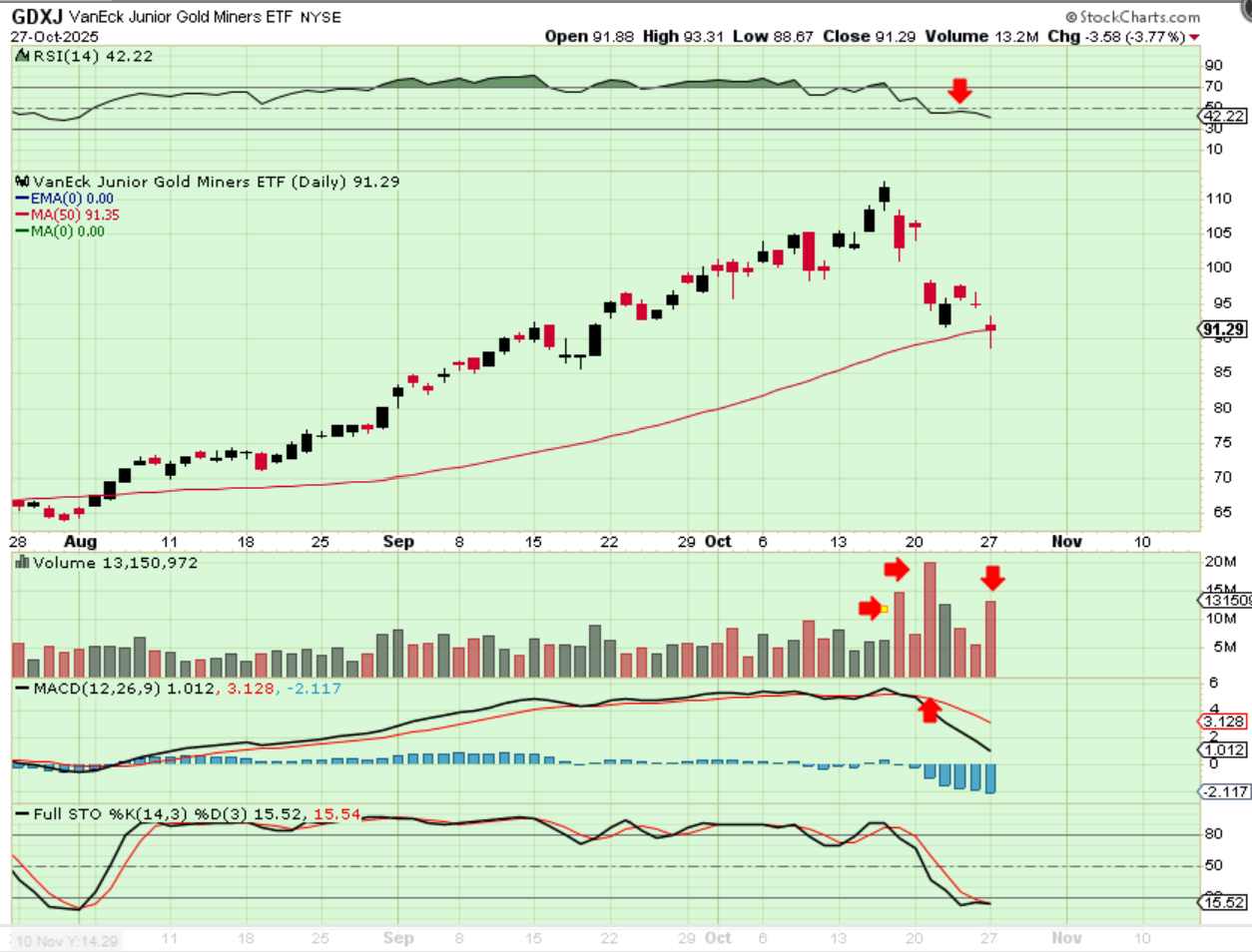 We just saw that The GDX ETF lost the 50sma and The GDXJ ETF also lost it yesterday, however it almost recovered. That said, I noticed this…