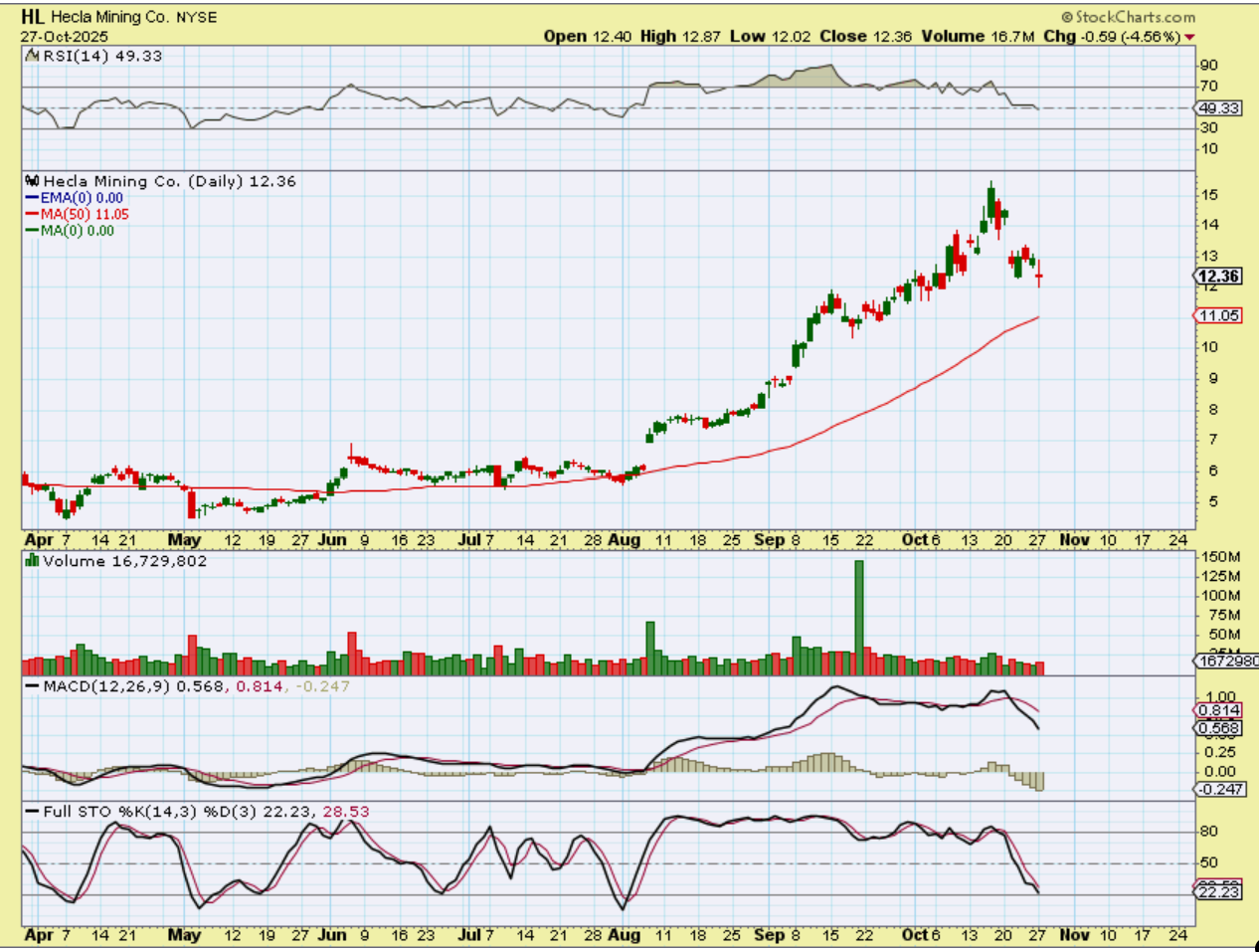 HL is also actually well above the 50sma. So, the observation is that MAYBE silver stocks are holding up better, because