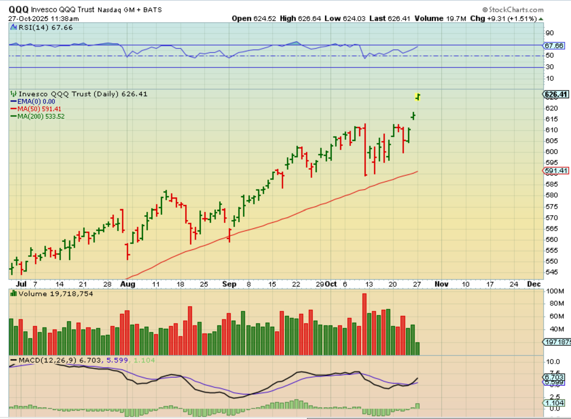 QQQ – We should be in a 4th daily cycle and the general markets are due for a dip into an ICL, yet the markets are heading straight up as we go into Fed Wednesday…