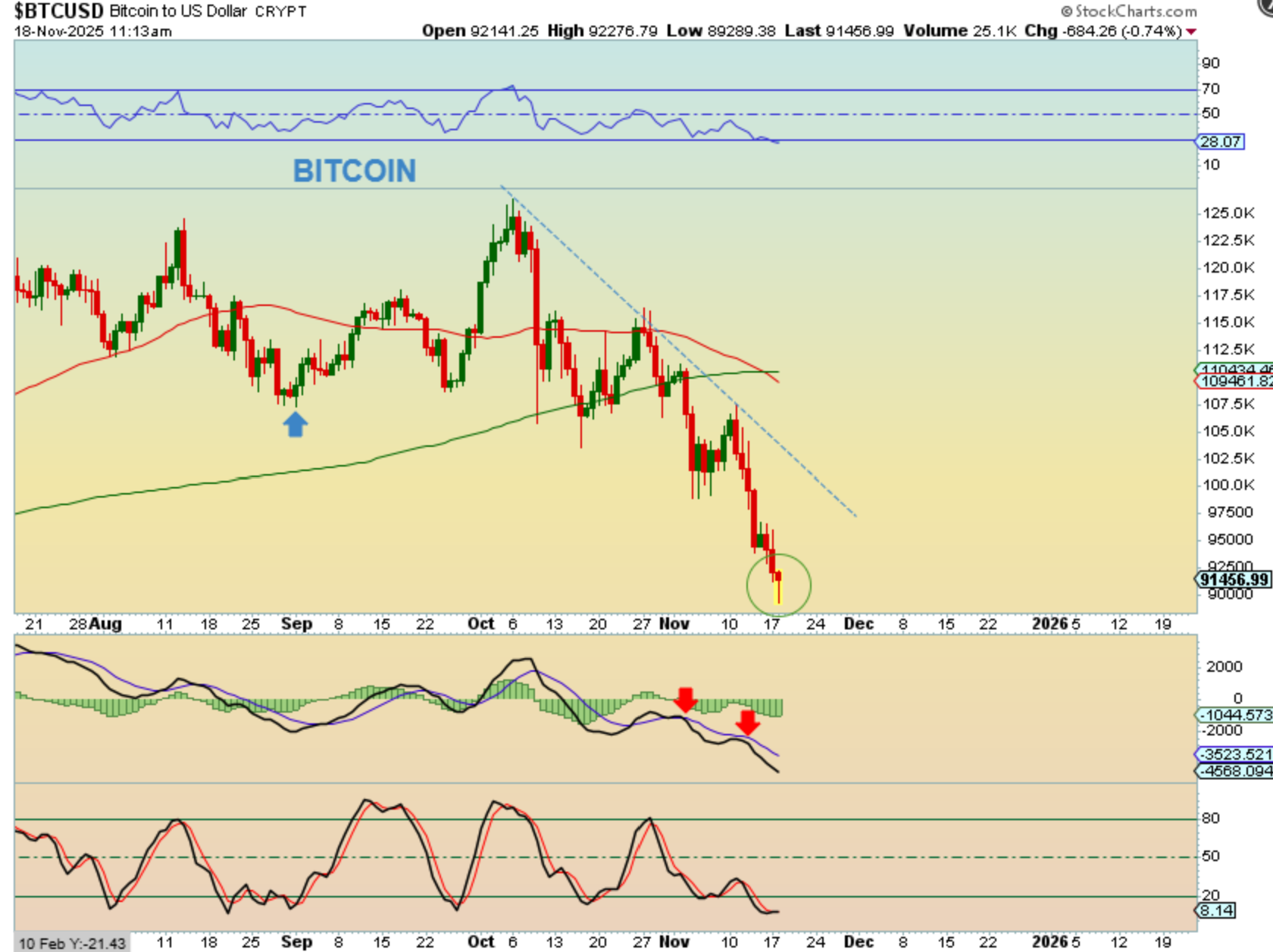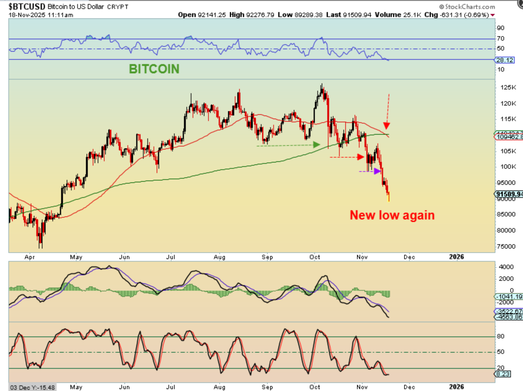 BITCOIN did not find its low yet. When crypto gets weak, it often just crashes and that is basically what we have been seeing. This is a live chart and it may be a reversal that offers that next bounce, but Bitcoin has been very weak.