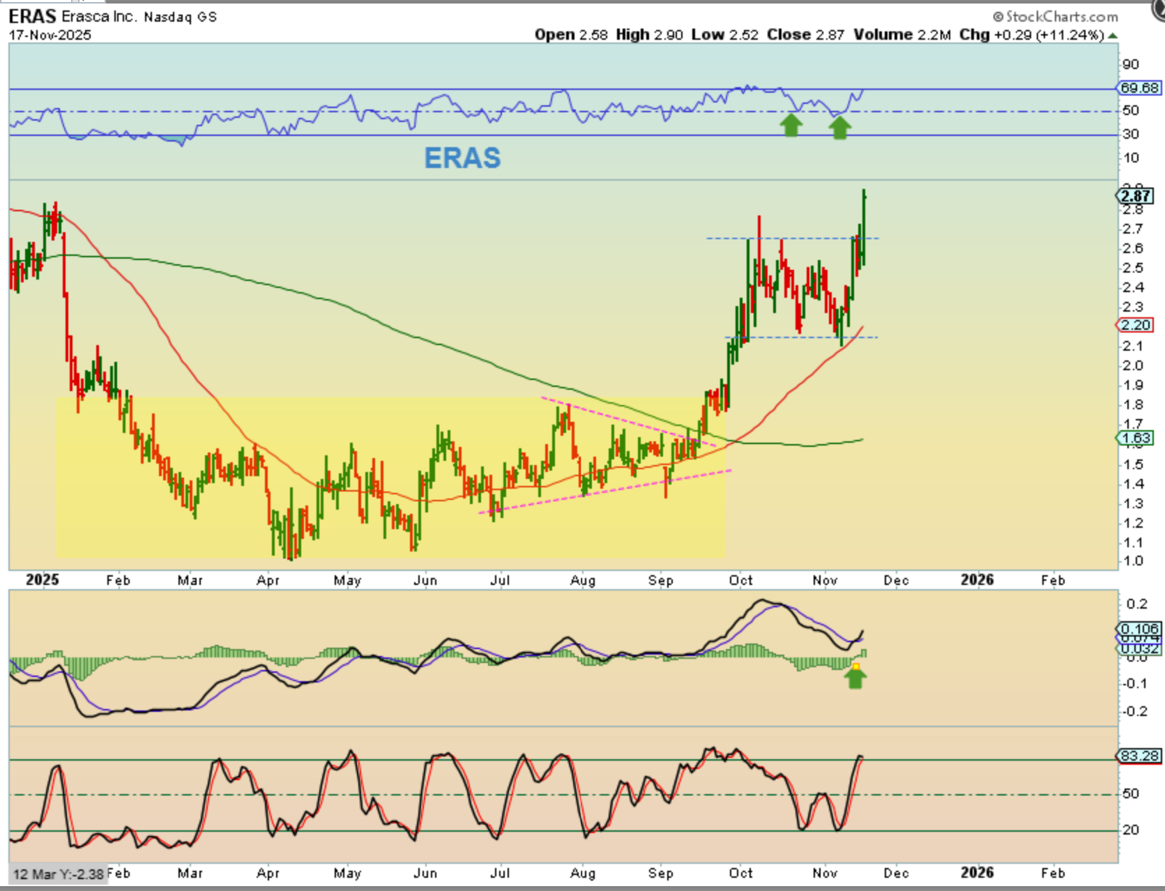 ERAS is another example of a bullish chart that is now at the recent highs despite the markets selling off, so this sector is still strong. I may check through my watch lists and see if there are laggers that are set up properly.