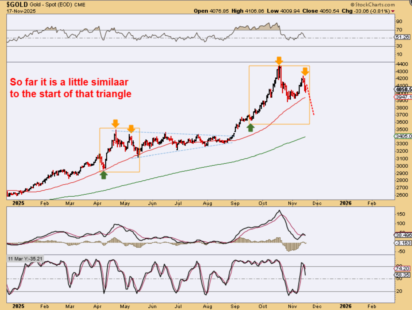 So far, Gold peaked in October and put in a dcl. We are seeing a peak on day 12 so far, and Monday was day 14 of possibly 25-35 days. Good news would be that it is similar to the ‘peak’ in April when it went on to consolidate and prepare to break higher over time. It also may be a double top though, and I have discussed that (similar to the Nasdaq bubble year 2000).